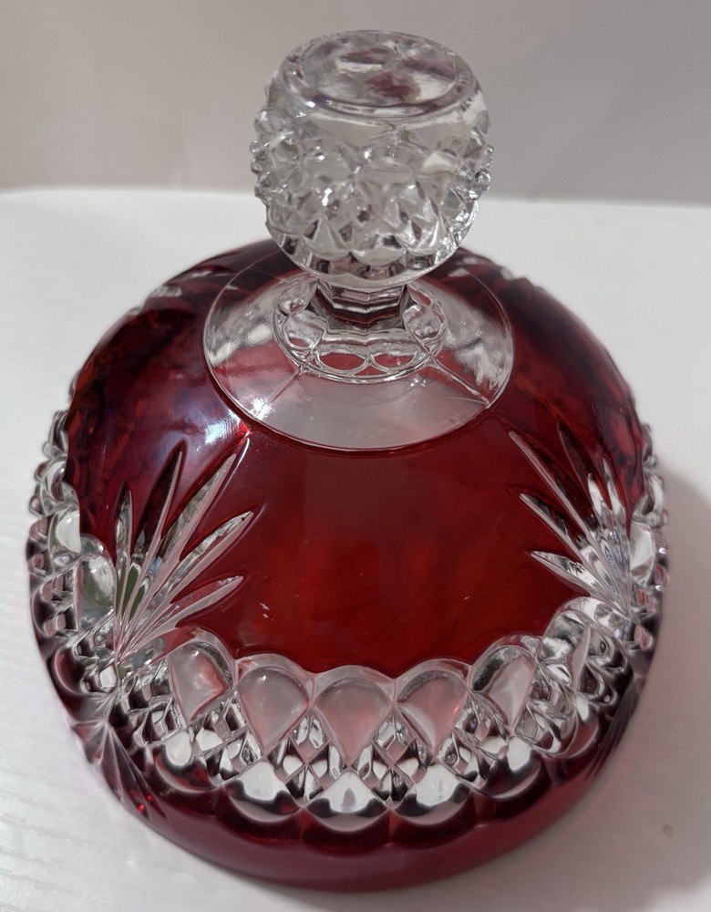 The Vintage Ruby Flash Royal Crystal EAPG Butter Dish Cover/Lid is elegant piece of decorative glassware. Made of crystal, the butter dish lid features a beautiful red and clear color combination, adding a touch of sophistication to any dining table. No chips or cracks on the rim. Does show wear on the red area, as can be seen in the pictures. Please review all pictures carefully. Questions, please ask. Thanks for looking!