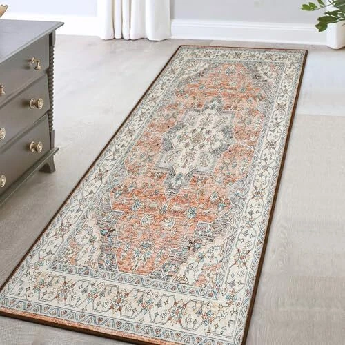 Return Policy Fast Delivery Trusted seller Vintage Runner Rug, 2x6 Orange Floral Medallion Washable Area Rugs for Living Room, Ultra Soft Bedroom Rug, Indoor Non-Slip Low-Pile Throw Carpet for Entryway Dorm Kitchen Dining Room Decor Product Description Exquisite Vintage Rug: orange rugs are designed unique and trendy, featuring beautiful floral medallion patterns and vintage tones that have a collection of traditional, classic, modern, shabby chic features that make the distressed rugs easy to match with your home decor Upgraded Non-Slip Rug: Our 2x6 runner rug surface is made of premium low pile chenille wool that is soft and non-shedding. The backing is made of upgraded silicone to keep the entry rug in place, making the vintage carpet perfect for high traffic areas such as hallways, living rooms and bedrooms Versatile Traditional Area Rug: Large rugs feature a collision of vintage design and modern style concepts, adding a luxurious and comfortable atmosp to home decor. Our floor rugs are available in a wide range of colors and sizes to meet your different styles and needs, ideal for all interior decoration, 2x6ft rugs can be used for living room rugs, bedroom rugs, entryways rugs, kitchen rugs, dormitory rugs, lounge rugs and more Machine Washable Rug: We have been working on researching and developing cozy carpets that are lasting and cleaning becomes very easy. Daily cleaning with a vacuum and blotting stains with a damp cloth are both effective methods. For deep cleaning, our soft rugs support machine washing, air drying and tumble drying. This adds to the convenience of orange carpet use and maintenance Tips:For shipping convenience, our indoor rugs are shipped in folded packages, so the comfy rugs will have some creases when they arrive. Please don't worry, the following methods can help your entry carpet to eliminate the wrinkles: 1. Reverse roll the rug and let it sit for 2-3 days; 2. flatten the rug with a weight; 3. use a clothing steamer; 4. apply carpet tape Shipping Returns Payment Shipping Shipping is FREE to all addresses other than APO/PO boxes in the lower 48 states. All our stock ships from US-based warehouses. Shipped via USPS or UPS (depending on location and package weight) Unless stated otherwise, all orders will ship within 24-72 hours of your payment being processed. Check our feedback to see the great reviews of FAST shipping we offer. Returns Seller does not accept returns Payment We currently accept payment via eBay managed payments only. Once payment is cleared, we will dispatch your shipment within 1-3 business days. Please refer to the "Shipping" tab for more information regarding shipping speed to your destination.