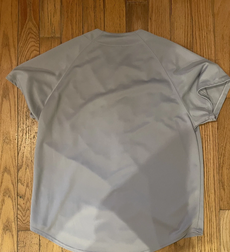 For sale is a vintage Russell Athletic New York Yankees jersey in road gray. This jersey features the iconic pinstripes and is in like new condition. It's a size XL and perfect for any baseball fan. This jersey is officially licensed by the Major League Baseball (MLB) and made for men. Whether you're a collector or want to show your team spirit, this jersey is a great addition to your wardrobe.