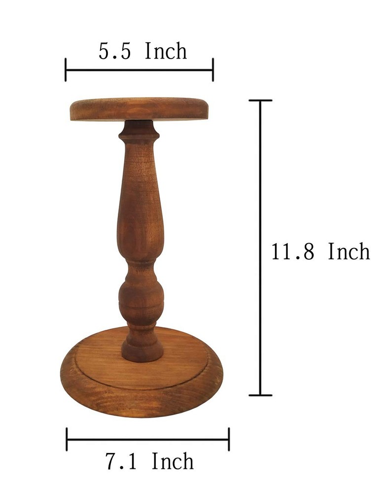 OwlGift Rustic Brown Vintage Style Wood Hat Stand, Wig Holder Display, Helmet Organizer Storage - Vintage Style : Wooden hat stand and wig tabletop stand with rustic brown finish. - Functional & Convenient : Store a wide variety of headwear such as hats, caps, beanies, cowboy hats, helmet, and more. - Stylish Antique Design : Turned base and post, with vintage-inspired style, make an attractive setting for hats to be stored. - Merchandise & Collectible Display : Stylish stand is perfect for merchandise displays select hats or displaying rare headgear, as well as at home storage. - Approximate Dimensions : Base: 7.1 Diameter; Height: 11.8; Rounded top: 5.5. (in inches) For the person who wears many hats, this vintage style hat, wig, caps, beanies, cowboy hats and helmet display stand is the perfect solution for your home or store. Antique and rustic features come together to form an ideal for hanging caps, fedoras, beanies, and any hats you can possibly imagine. The rounded top design on this hat rack also works perfectly for wigs of all types. Keep this hat rack on your dresser to show off your head accessories while keeping them organized and pristine. Material: Wood. Vintage Style: Wooden hat stand and wig tabletop stand with rustic brown finish. Functional & Convenient: Store a wide variety of headwear such as hats, caps, beanies, cowboy hats, helmet, and more. Stylish Antique Design: Turned base and post, with vintage-inspired style, make an attractive setting for hats to be stored. Merchandise & Collectible Display: Stylish stand is perfect for merchandise displays select hats or displaying rare headgear, as well as at home storage. Approximate Dimensions: Base: 7.1 Diameter; Height: 11.8; Rounded top: 5.5. (in inches)