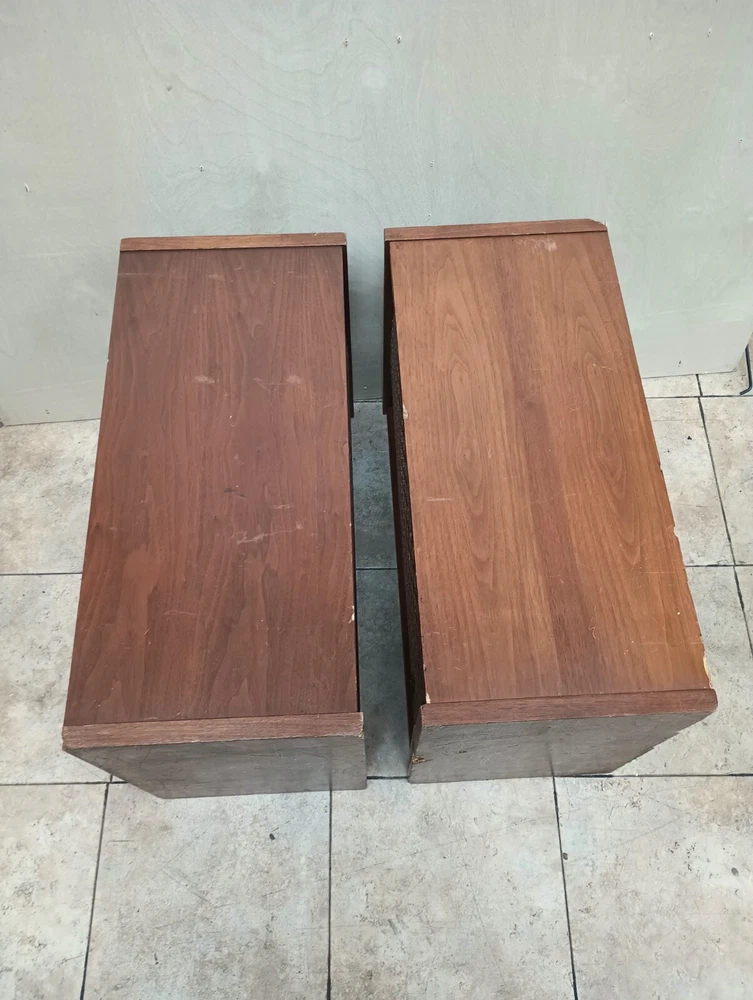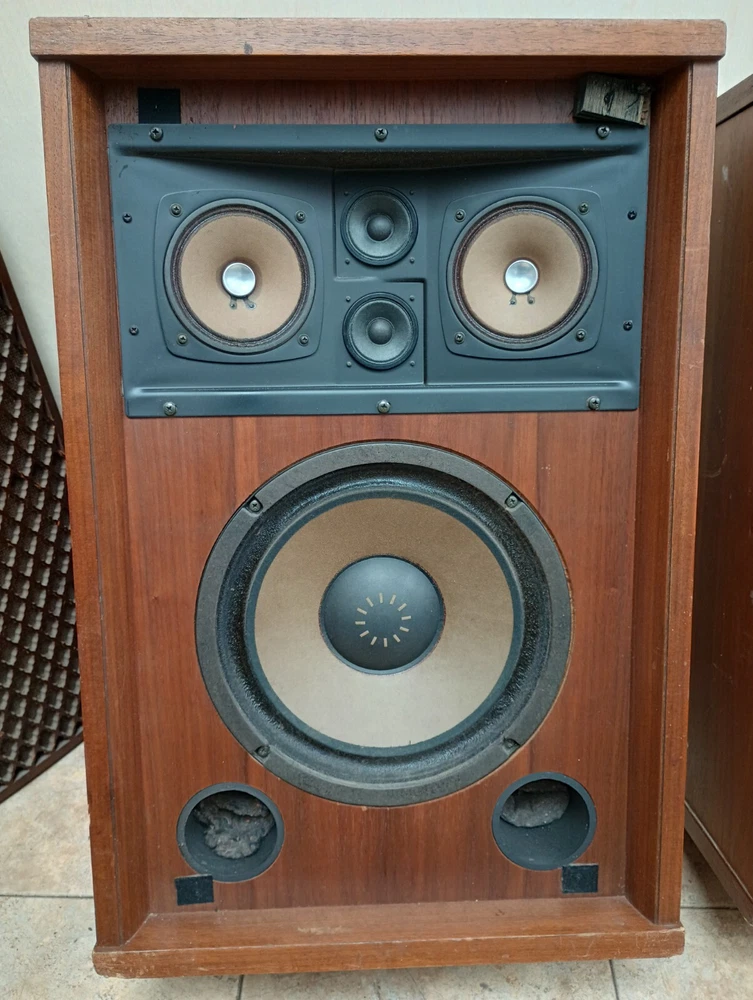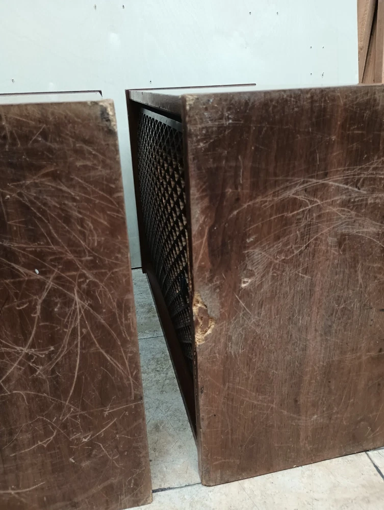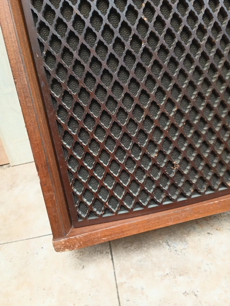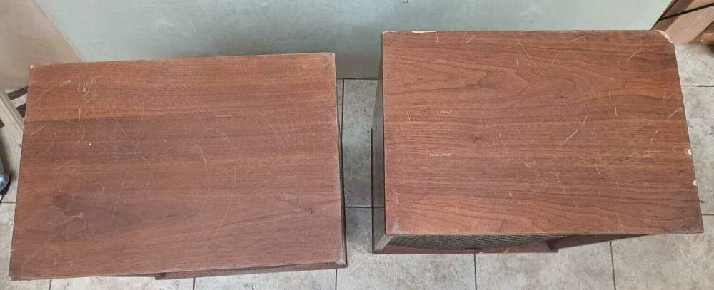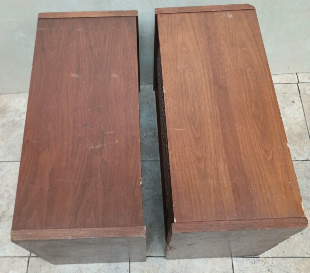 Vintage Pair of Sansui SP-1200 Speakers Cabinets in bad shape missing one badge on of the cabinet has major damage as seen on picture s one for the grills is missing all the screws one tweeter is torn(see pics) otherwise they still sound good Sold As Is as pictured the will be shipped in two separated boxes
