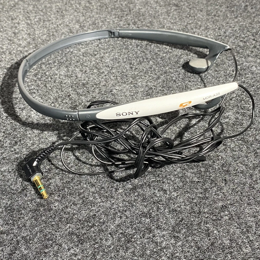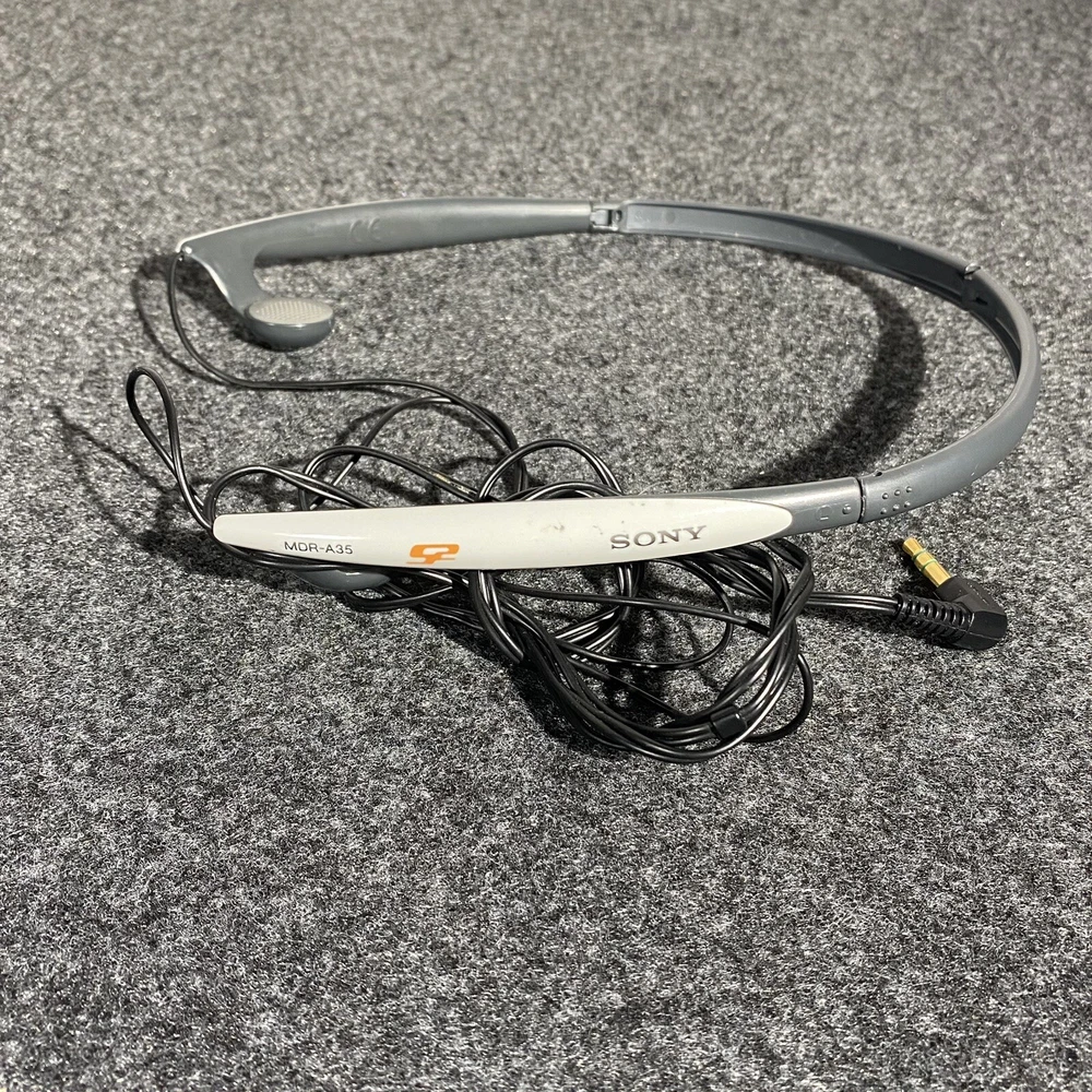 Experience high-quality sound with these vintage Sony MDR-A35 Sport Walkman headphones. These folding, compact headphones are perfect for on-the-go listening. The headphones are designed with a headband and feature double earpieces for a comfortable fit. The headphones are available in white and black colors and have a 3.5mm jack for connectivity. They were made in Japan and are compatible with various devices. These headphones are perfect for those who love vintage electronics and want a stylish and functional accessory.
