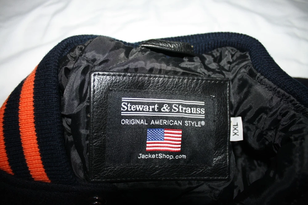 Vintage STEWART STRAUSS Letterman Jacket MENS Wool LEATHER BENGALS ORIOLES 2XL new old inventory genuine real wool AND LEATHER