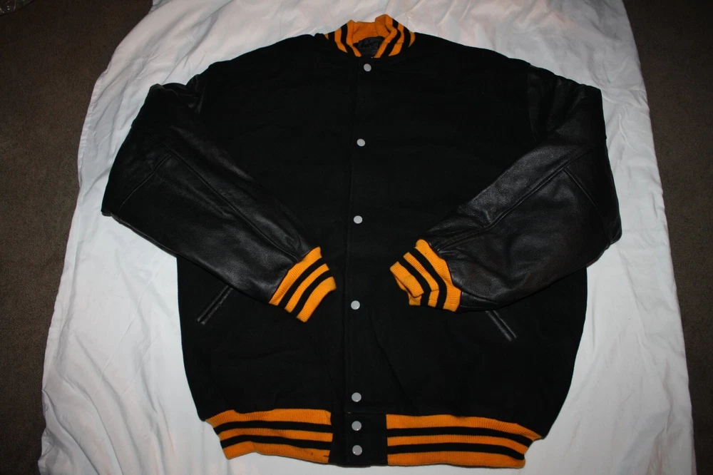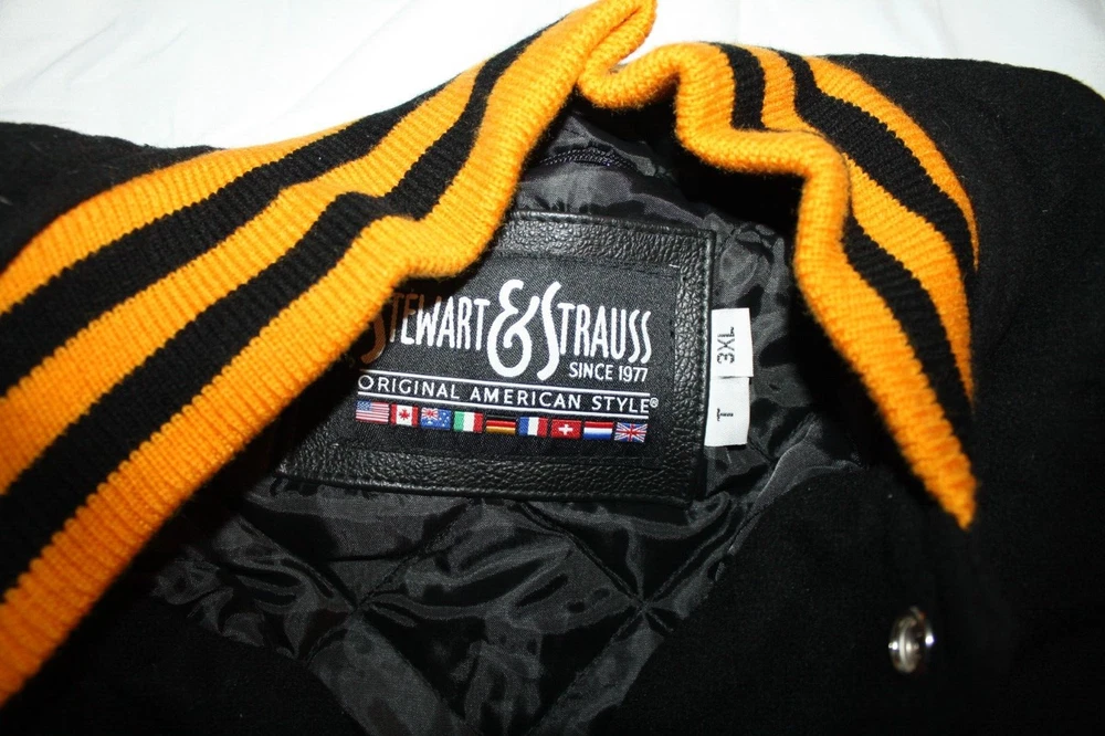 Vintage STEWART STRAUSS Letterman Jacket MENS Wool LEATHER BENGALS ORIOLES 3X TALL new old inventory genuine real wool AND LEATHER