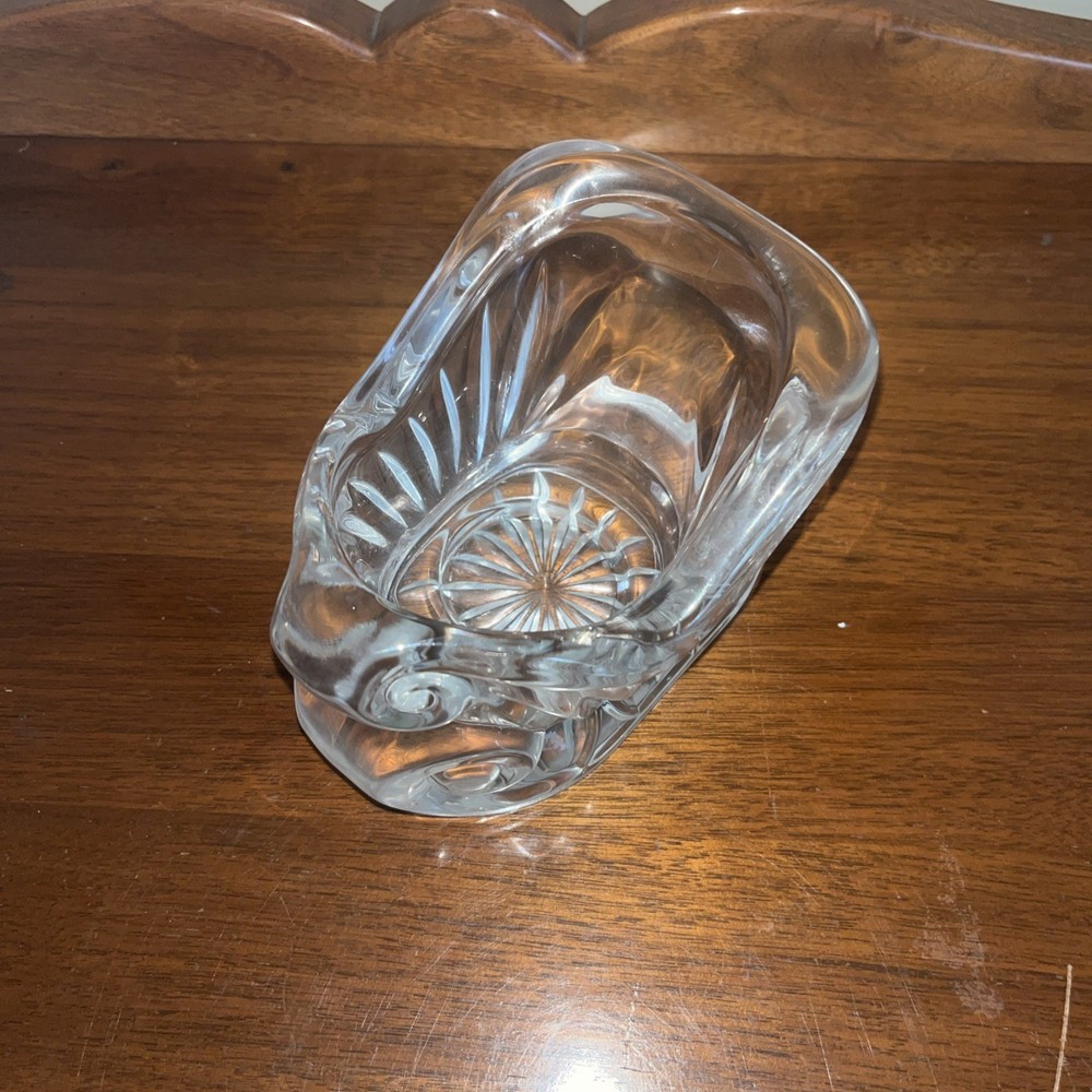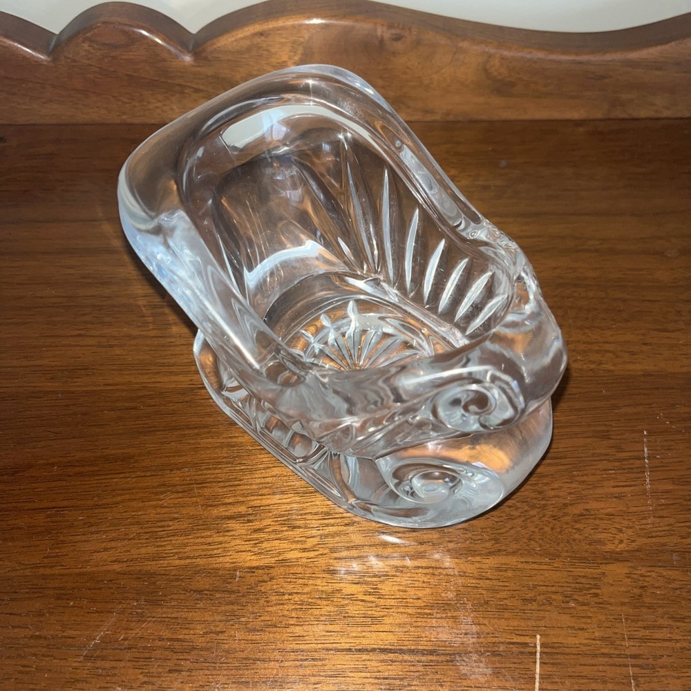 Elevate your holiday decor with the St George Santa Sleigh, a vintage candy dish that exudes elegance and yuletide charm. Crafted from lead crystal, this piece showcases a classic design of Santa's sleigh, complete with intricate detailing that captures the essence of Christmas cheer. Dating back to the 1990s, this sleigh is a beautiful representation of the craftsmanship from that era. It's ideal for serving treats during your festive gatherings or as a standout decorative item on your mantle or table. With its timeless appeal and sparkling clarity, it brings a touch of sophistication to any holiday setting.