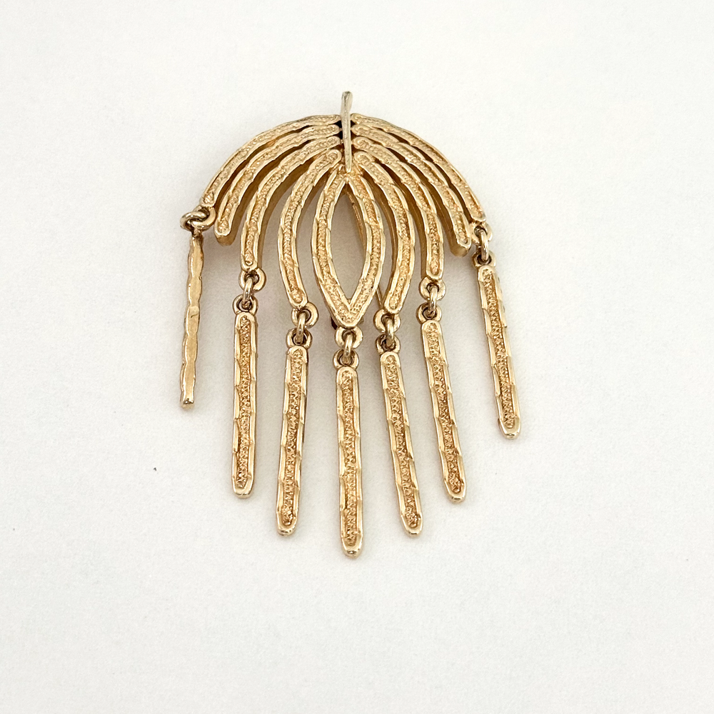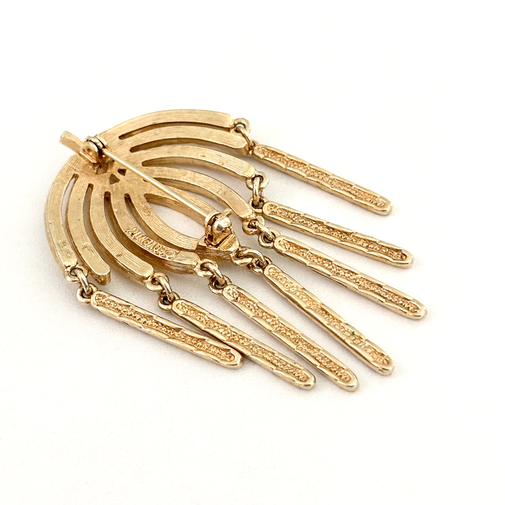 Lovely Vintage Sarah Coventry Unique Umbrella Dangle Tassel Gold Tone Brooch Pin Length: 2.75" Signed: Sarah Cov Very good vintage condition. Pin functions great. - Fast shipping, I ship the same or next business day! I also combine shipping. - Thank you so much for shopping with me and please check out my other jewelry listings, I post new pieces daily!