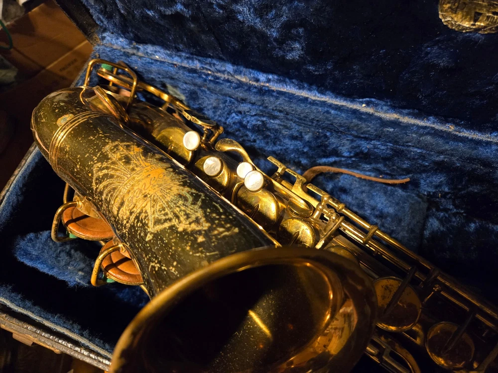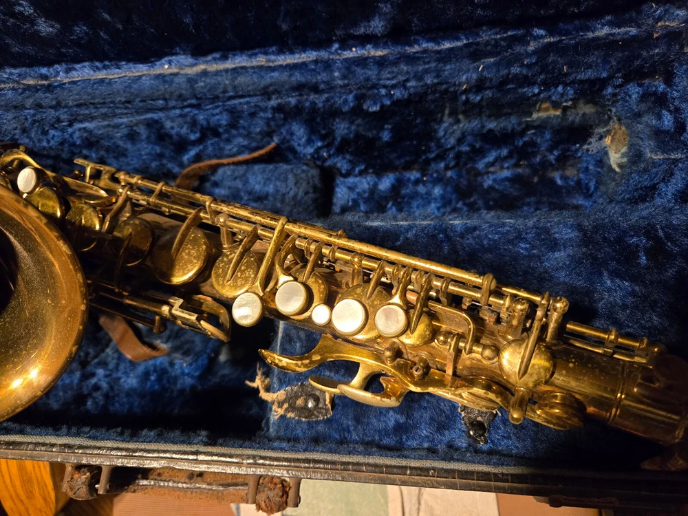 Antique 1913 C.G. Conn Elkhart Low Pitch Alto Saxophone w/ Mouth Piece