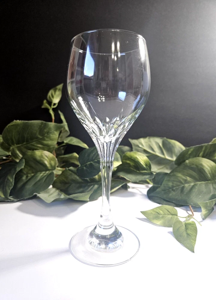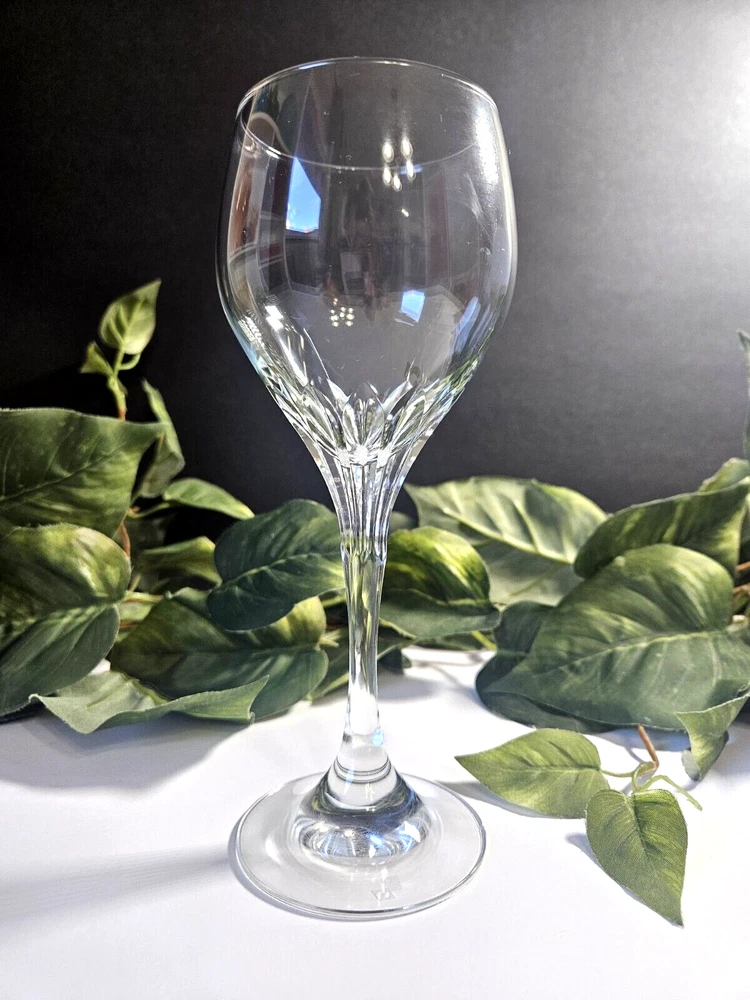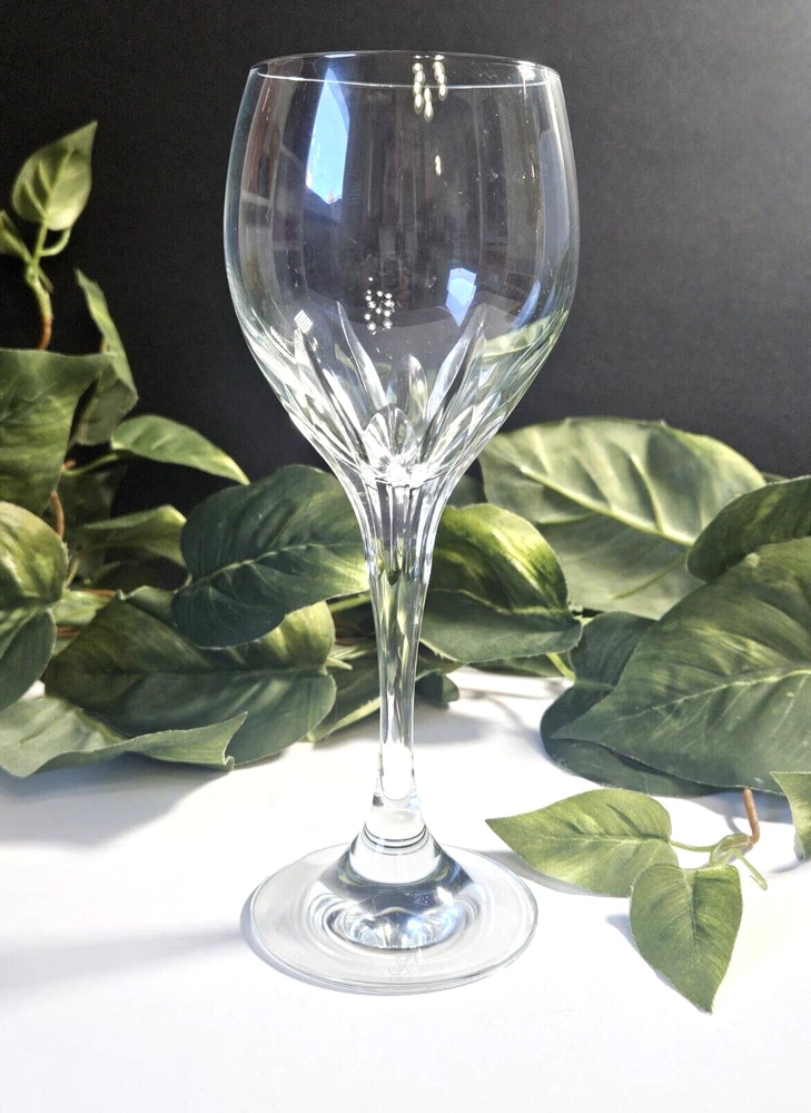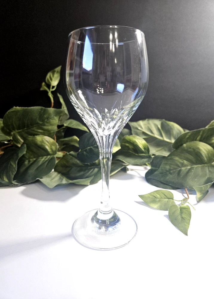 This vintage Schott-Zwiesel crystal water goblet is a stunning addition to any glassware collection. With a capacity of 12 oz and a height of 7 7/8", it is perfect for all occasions. The round shape and clear color make it a classic piece that will fit seamlessly into any home decor. Made in Germany, this water goblet features a cut crystal design and is part of the Scott-Zwiesel Revue collection. It is recommended to hand wash only and comes with care instructions for optimal maintenance. The piece is sold as a single item and does not include any additional accessories. Add this unique and timeless piece to your collection today.