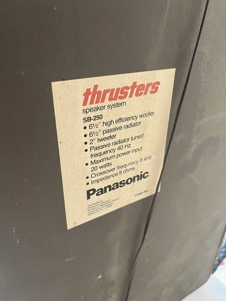 This vintage set of Panasonic Thrusters SB-250 speakers is a rare find for any audiophile. With their classic design and mid-century sound, they are sure to add a touch of nostalgia to any music listening experience. These speakers have been thoroughly tested and are in excellent working order, making them a great choice for anyone looking to upgrade their vintage audio setup. The brand, Panasonic, is known for their high-quality audio equipment and these speakers are no exception. They are perfect for any consumer electronics enthusiast or collector of vintage audio equipment.