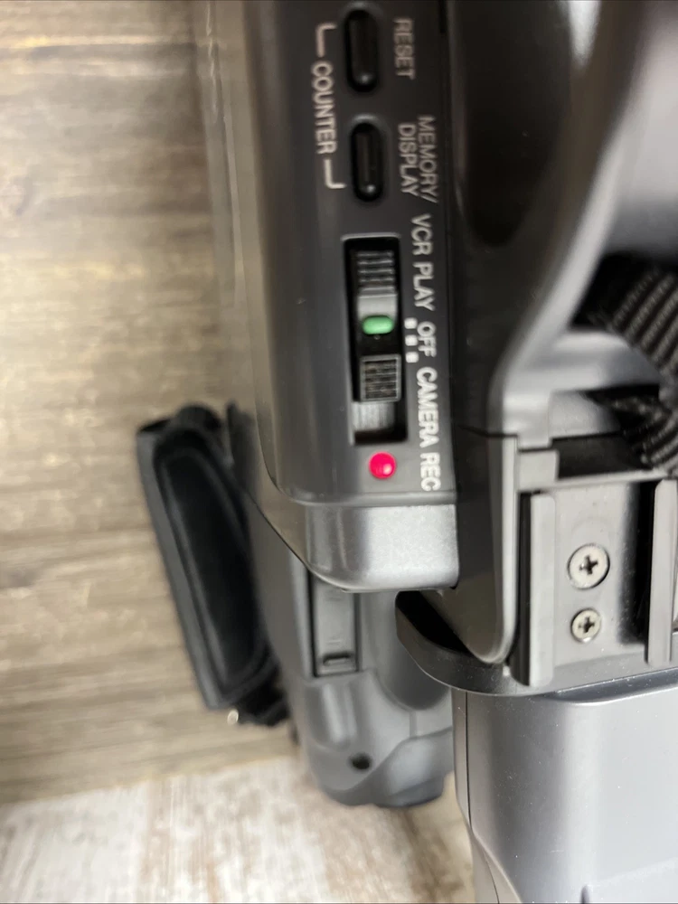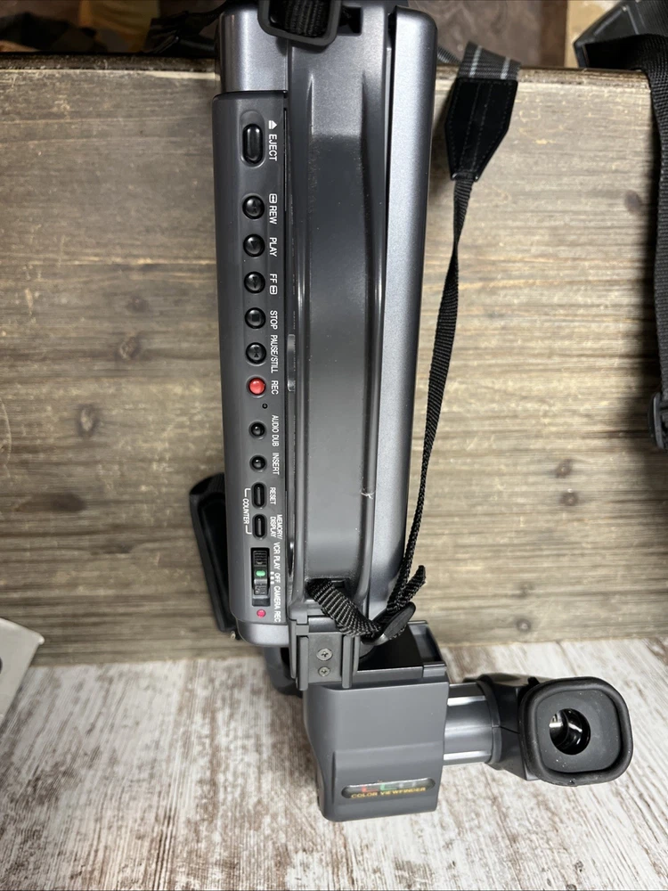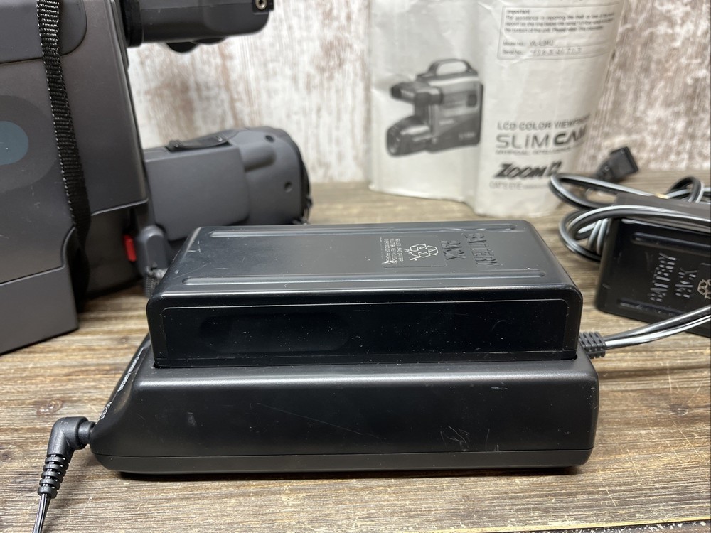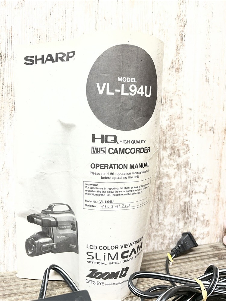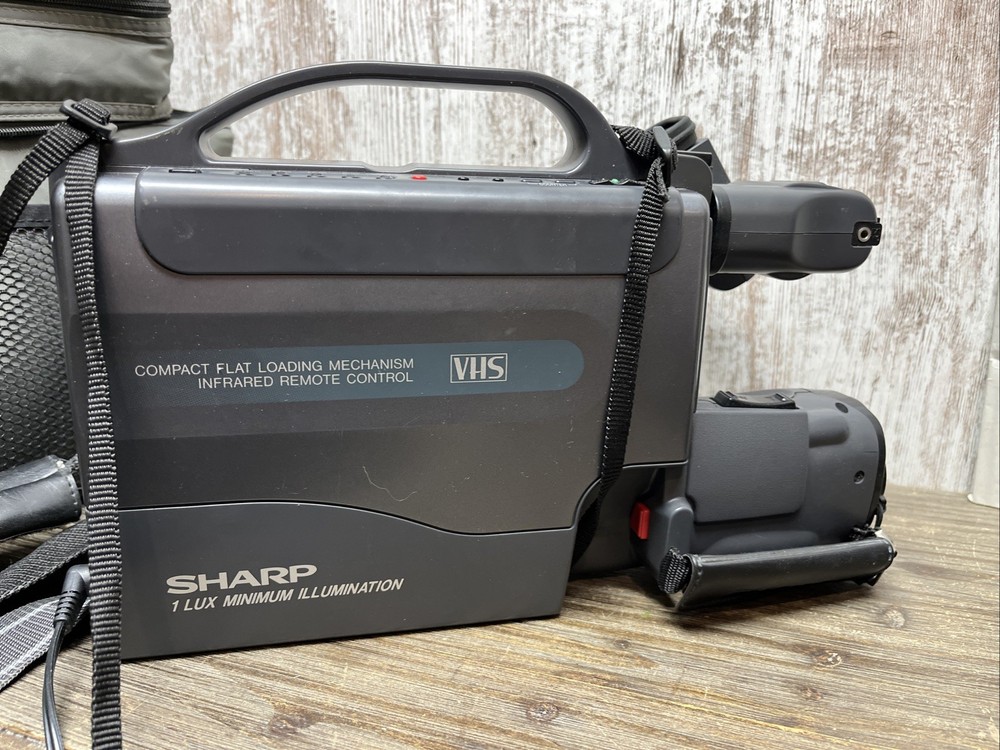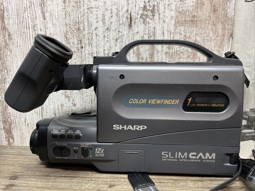 The Vintage Sharp Slim Camcorder Zoom VHS Model VL-L50U is a classic handheld camcorder with a sleek black design. With a 12x optical zoom and standard definition recording, this Sharp Viewcam model from 1980s TOCHIGI, JAPAN features a built-in microphone for capturing clear audio. The camcorder uses VHS tapes for storage and connectivity, making it a reliable choice for filming and recording memories with a touch of nostalgia. Not able to test with VHS but door opened, lights all came on all components.