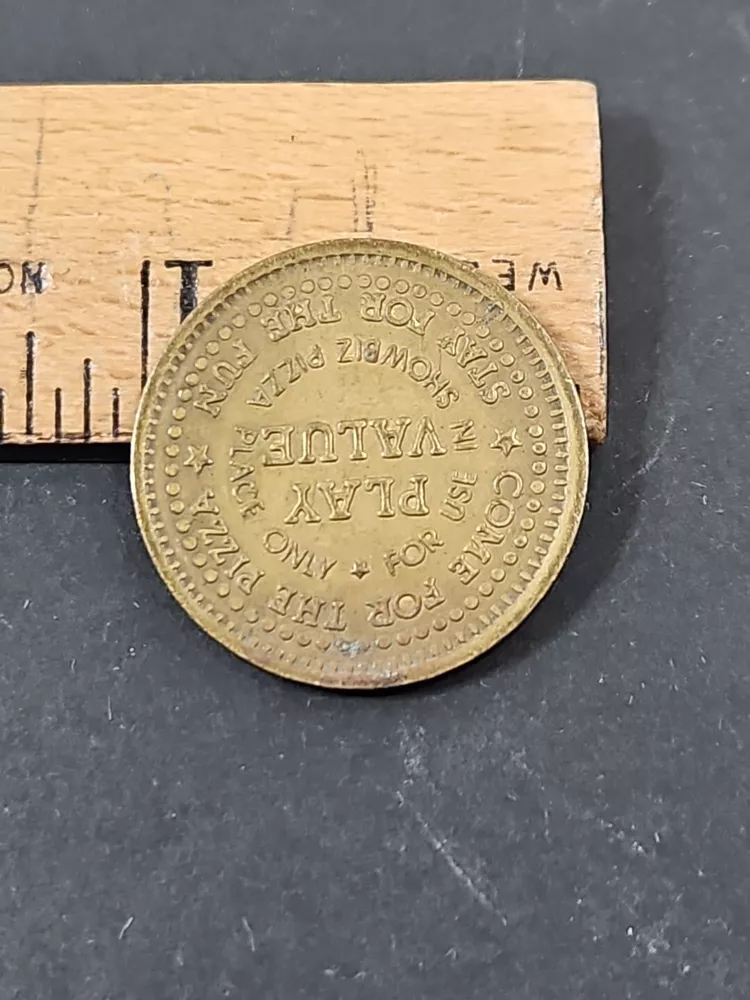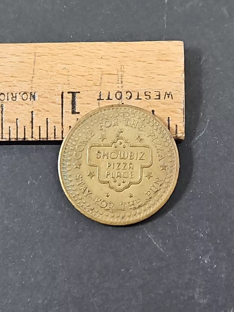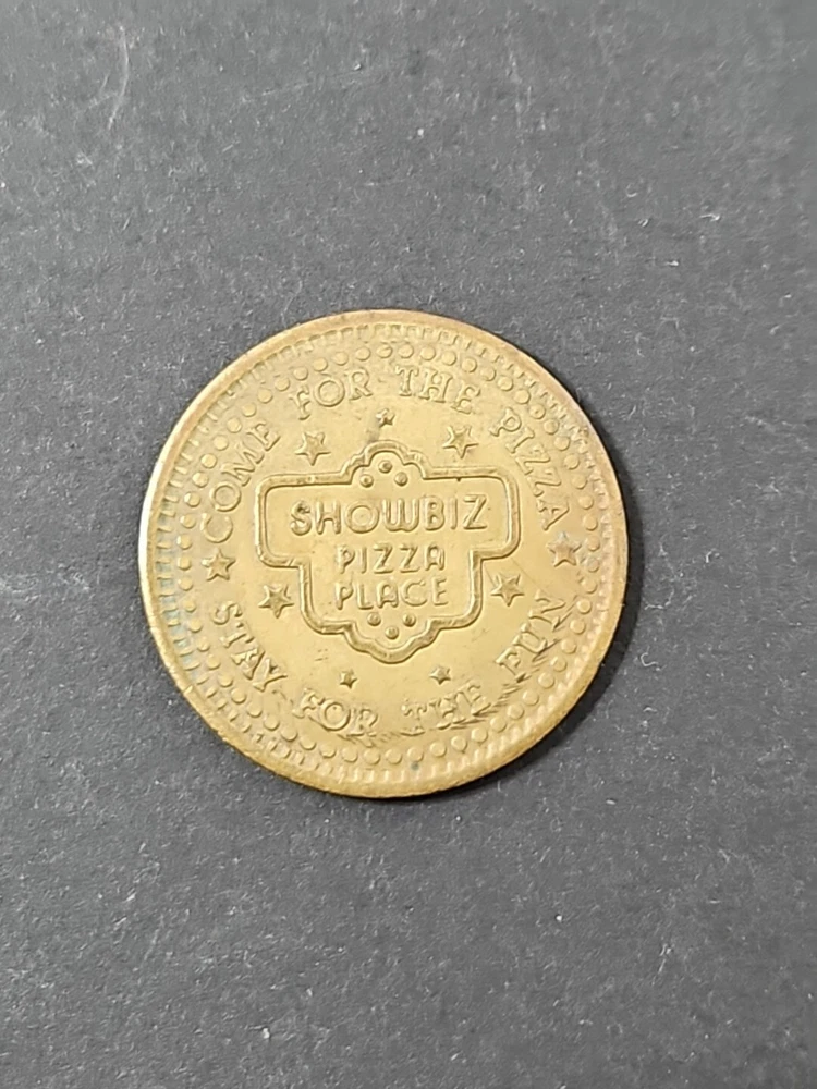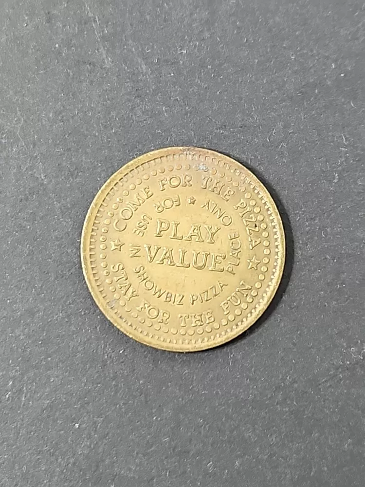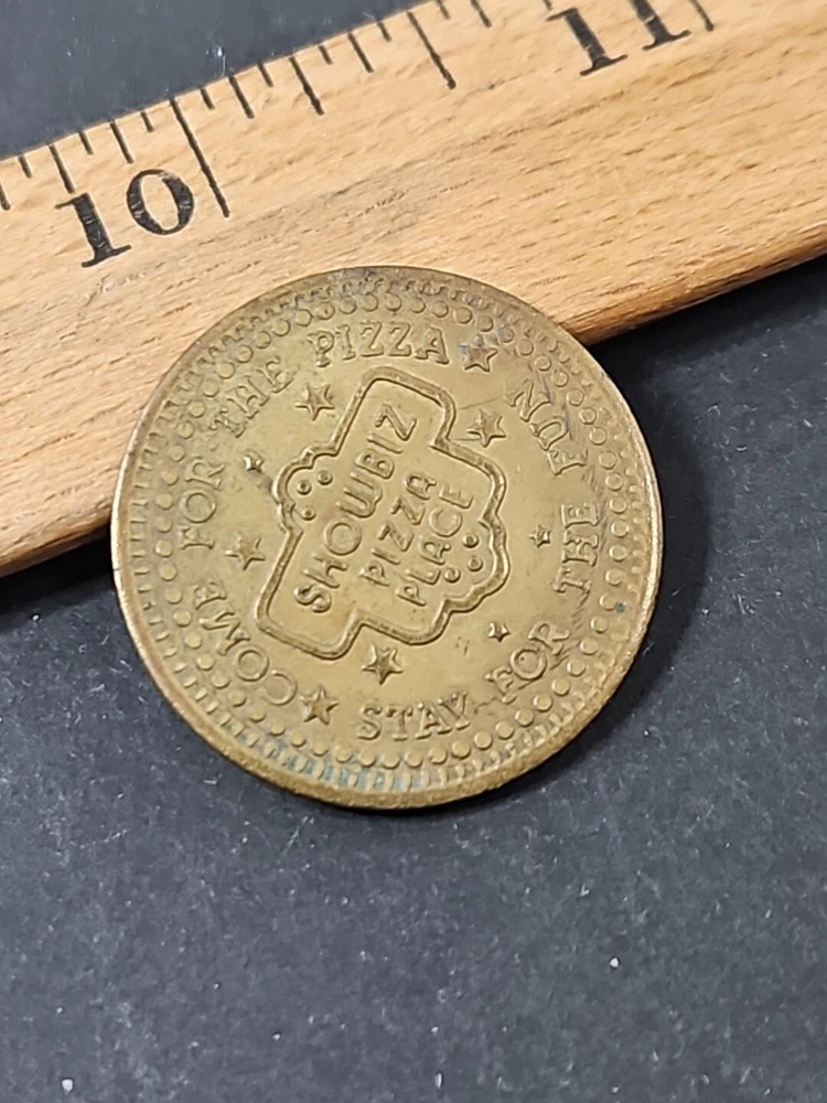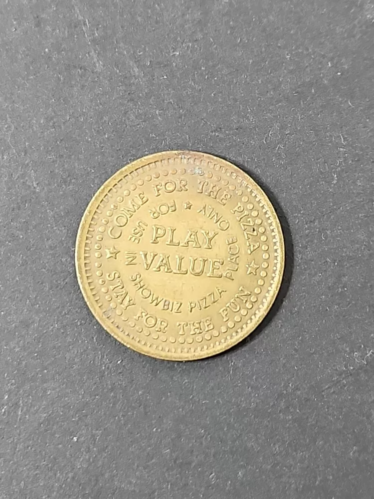 Vintage Showbiz Pizza Place Coin - Collectible Play Value Token Product will be shipped timely and packaged with care. Offers are encouraged. Please feel free to reach out with questions. Please see pictures. Thank you. Good used condition. Light wear from age and use. Markings from age and use. See pictures The Vintage Showbiz Pizza Place Coin is a collectible play value token from 1980. The bronze coin features the theme of restaurants and fast food, specifically associated with Showbiz Pizza Place. It is an original piece and serves as a nostalgic item from the past. OD1