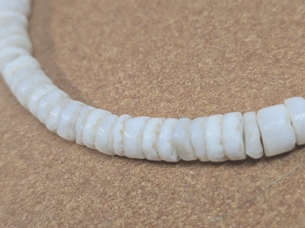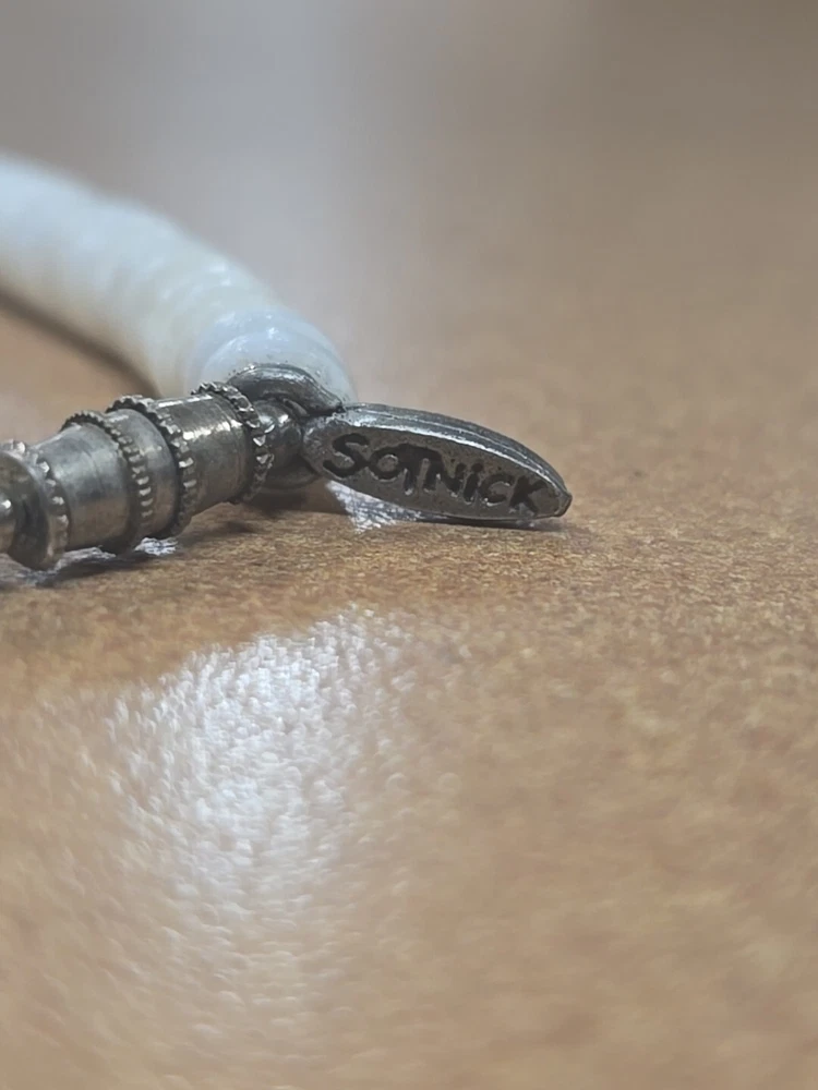 This vintage Sotnick necklace is a unique piece of jewelry that features a round pendant with a natural white shell. The necklace is 16 inches long and has a barrel clasp closure. It is signed by the artist and has a beaded style that is perfect for any fashion occasion. The pendant hangs from a cord chain type and has a 6mm shell length. This necklace is a great addition to any collection and is perfect for unisex adults.