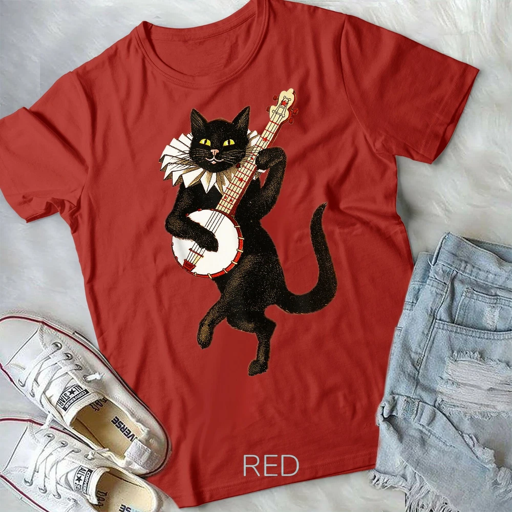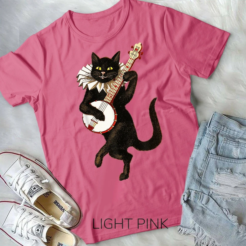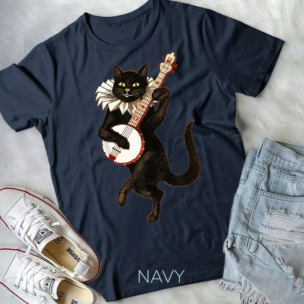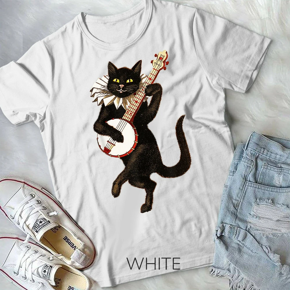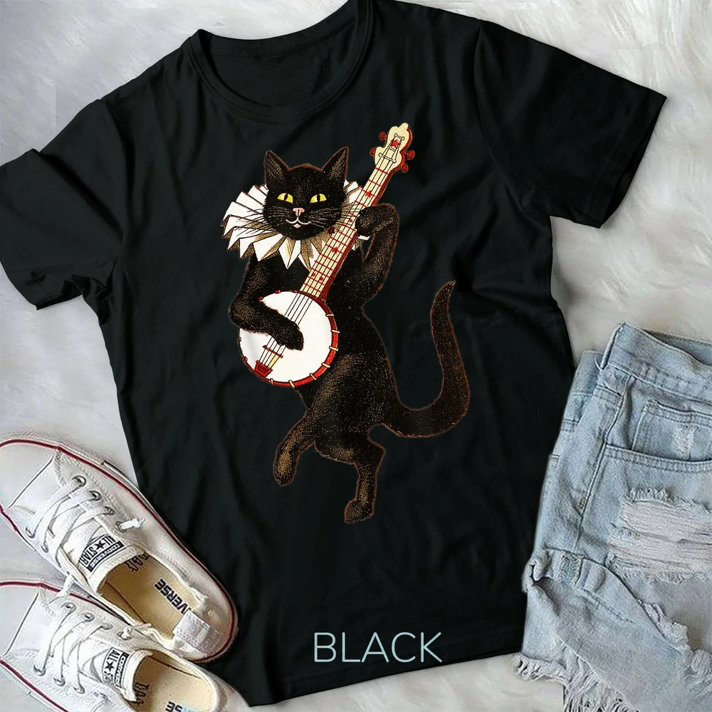 Vintage Silly Weird Cat Playing Banjo Country Cat Lover Gift Unisex Form T-Shirt