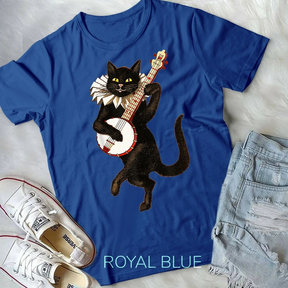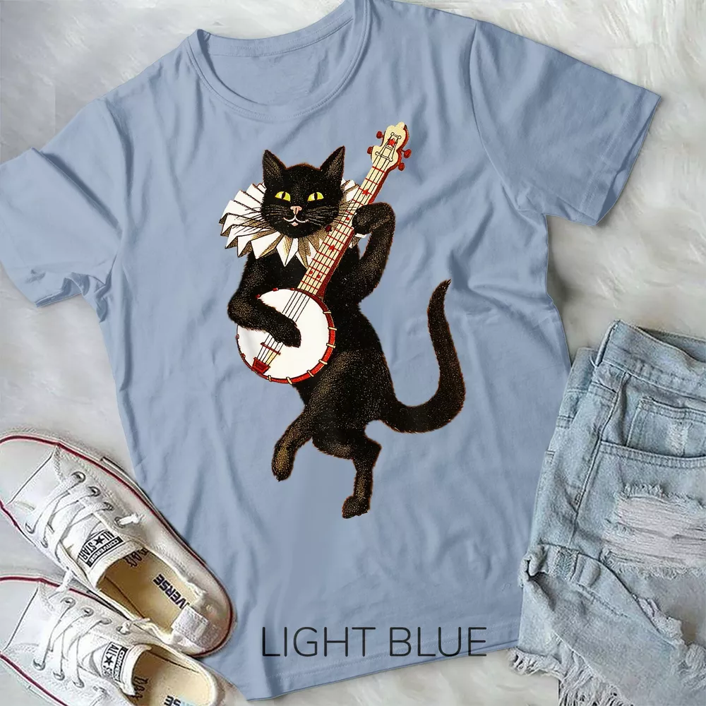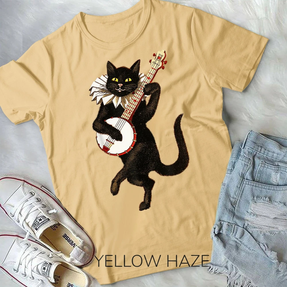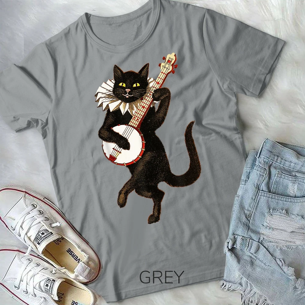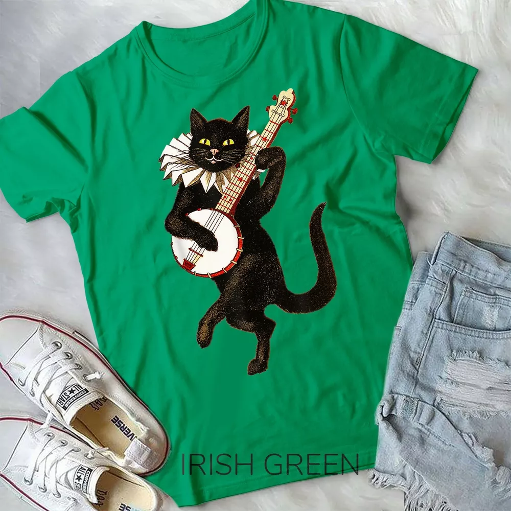 Vintage Silly Weird Cat Playing Banjo Country Cat Lover Gift Unisex Form T-Shirt