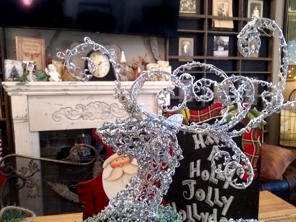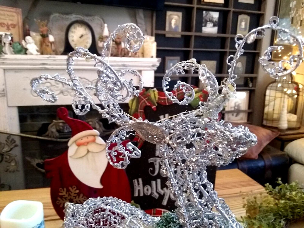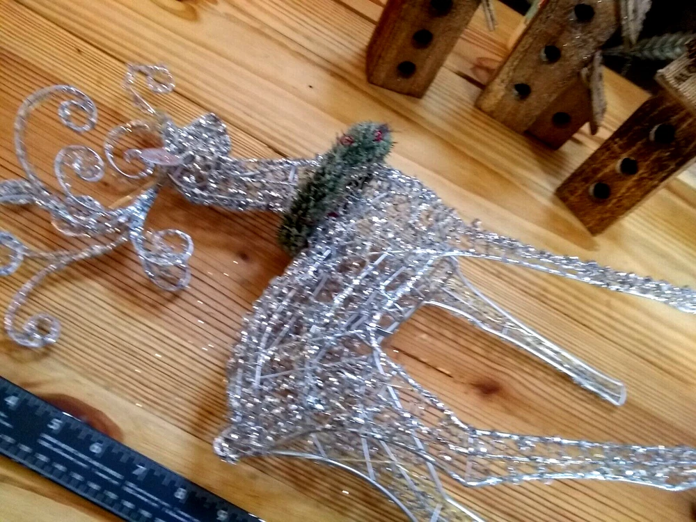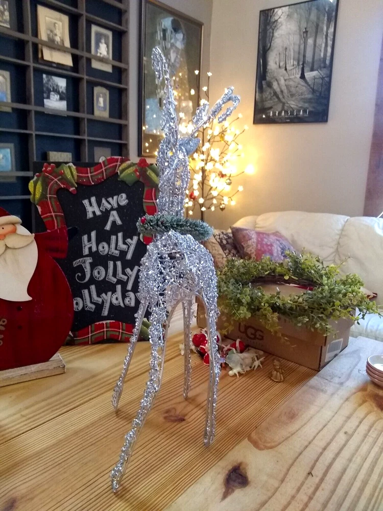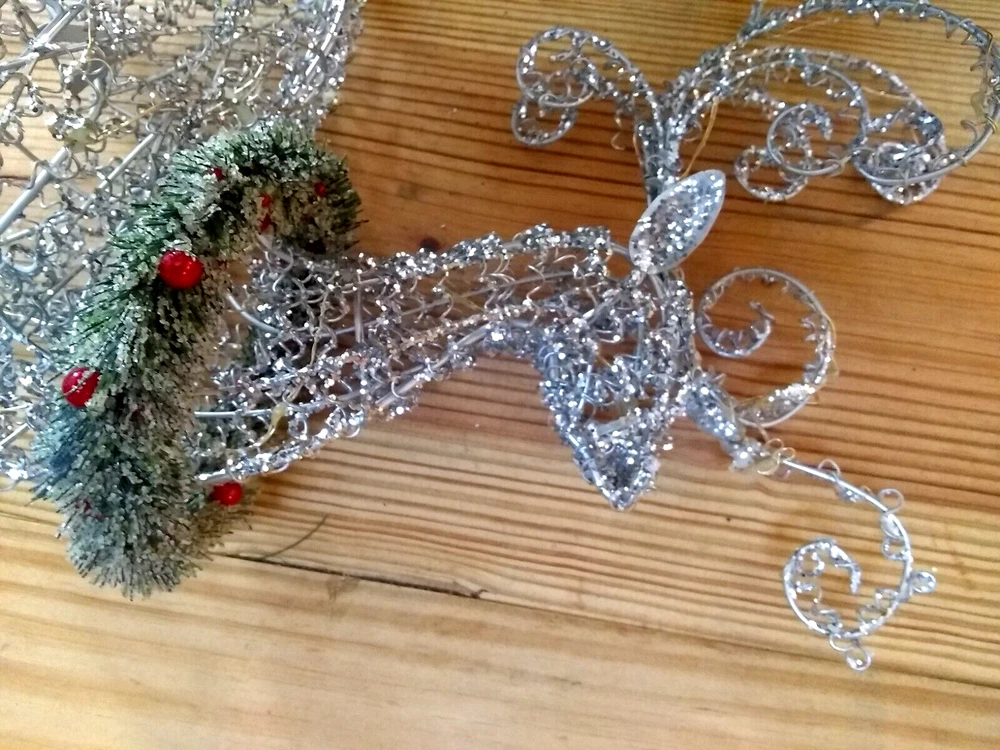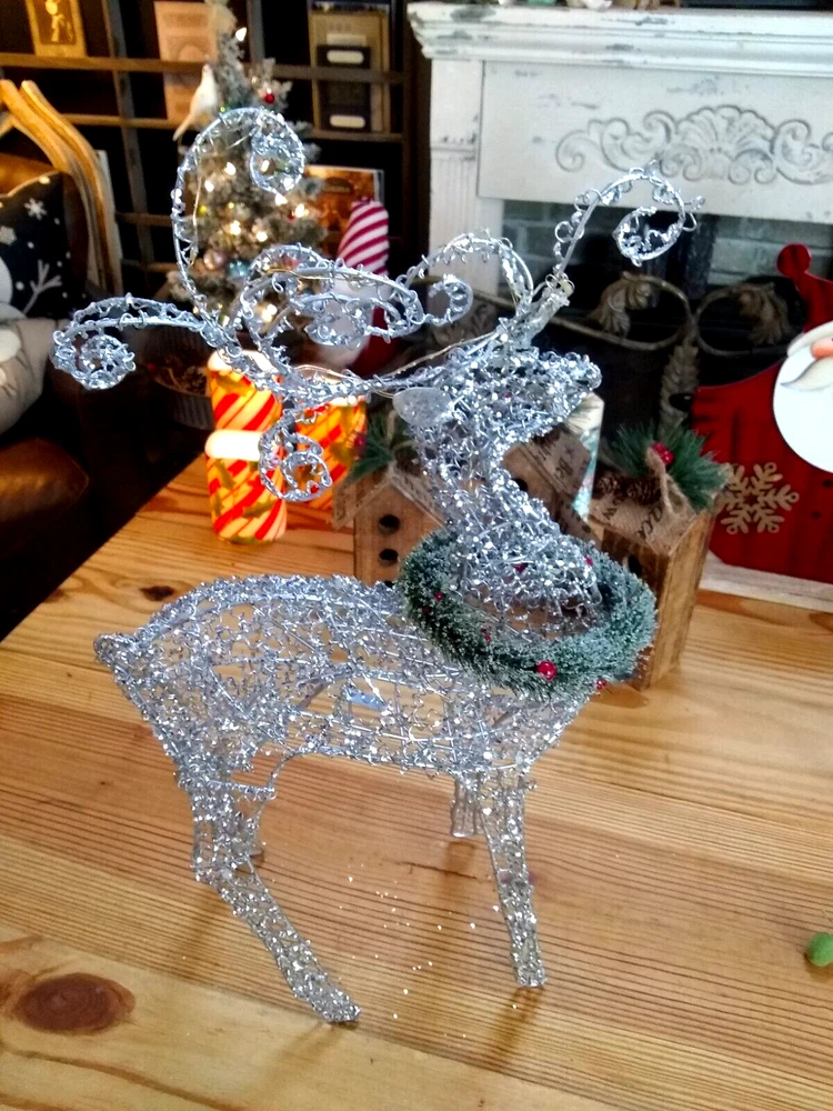 Today I have to offer you a Vintage 18" Tall silver wire and glitter reindeer figurine with a beautiful bottle brush wreath around his neck. This vintage ranger figurine comes from my own personal family estate and is in very good previously displayed condition showing no signs of hardware however one of the reindeers ears is missing please zoom in on photos for exact measurements and condition it would be a lovely addition to your family's heirloom holiday collectibles thank you for stopping by feel free to contact me with any questions you may have all measures of safety will be taken while preparing for shipment.All serious offers considered I hope you have a wonderful happy healthy and safe holiday season