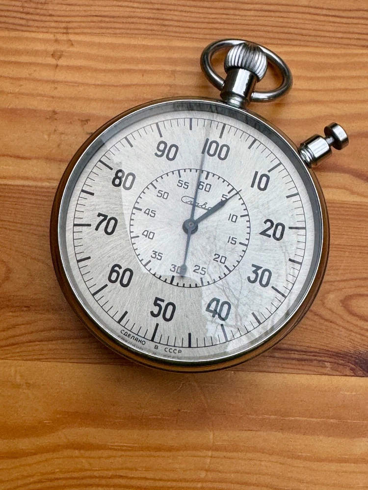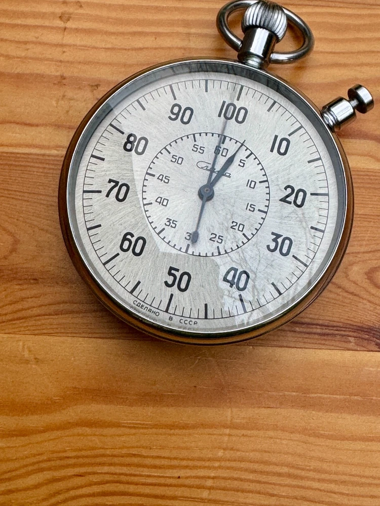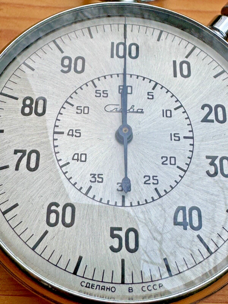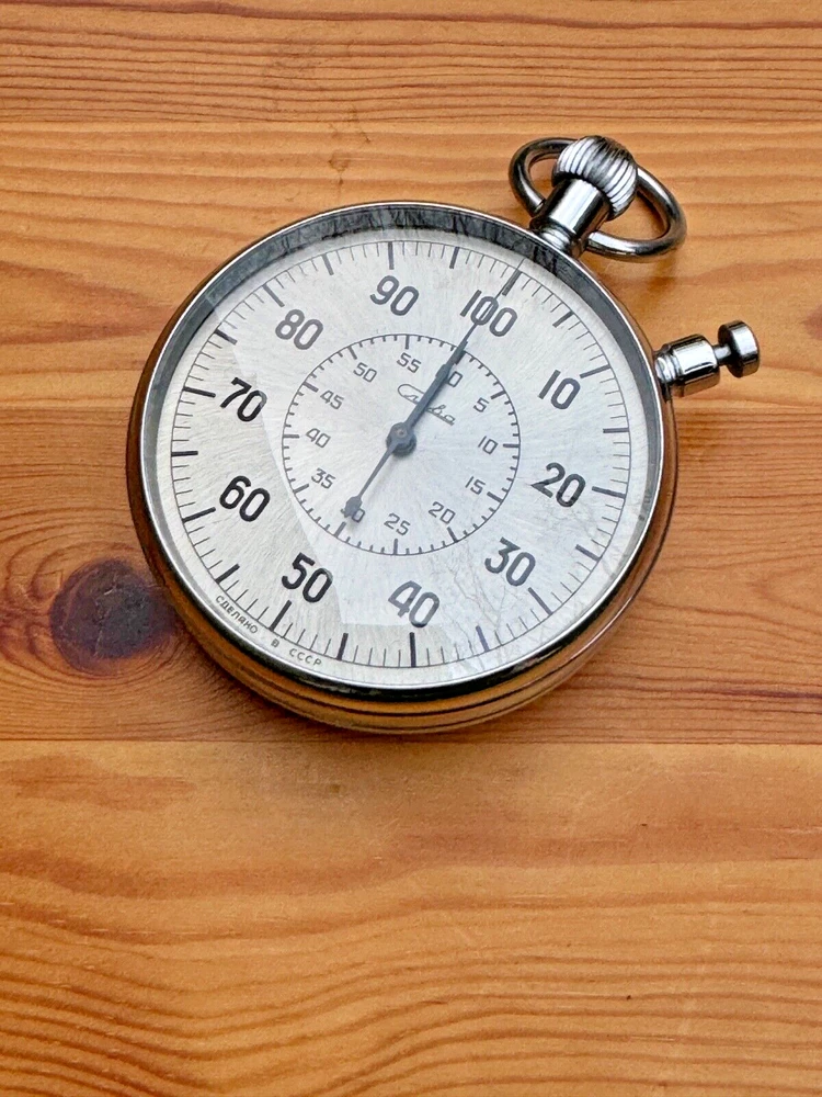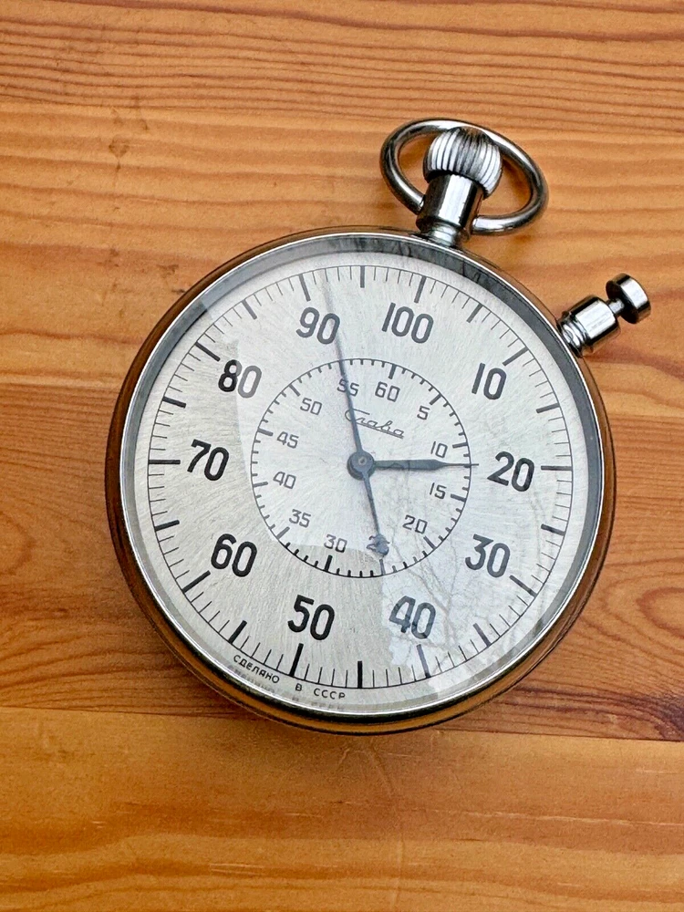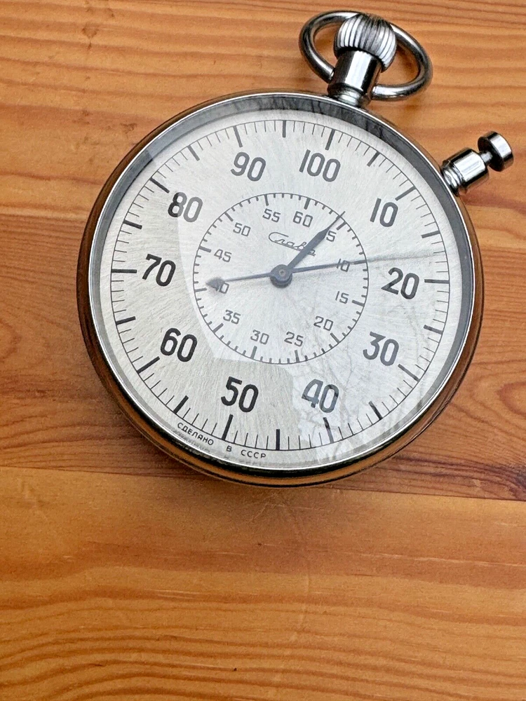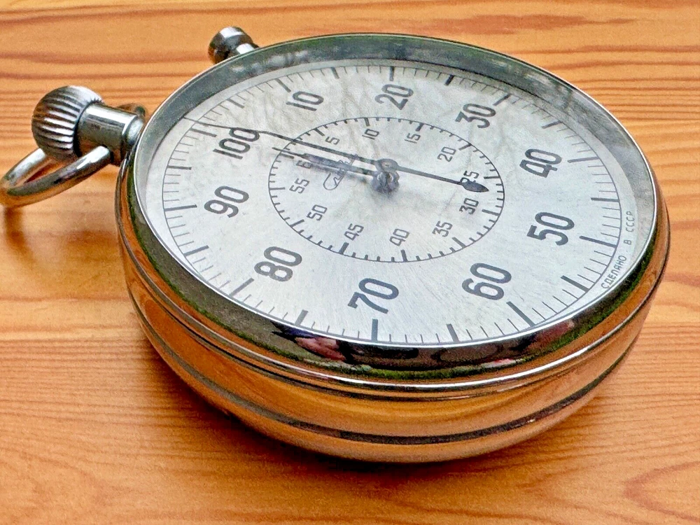 Introducing a Vintage Slava Chronoscope Stopwatch , a remarkable piece of Soviet-era craftsmanship renowned for its precision and durability. Manufactured by the Second Moscow Watch Factory (Slava), this stopwatch is designed to measure time intervals with an impressive accuracy of 1/100th of a second, making it an exceptional tool for professional timing in sports and other precision-dependent activities. Key Features: High Precision Timing: Measures intervals up to 1/100th of a second, catering to activities requiring meticulous time tracking. Mechanical Movement: Equipped with a robust mechanical movement, ensuring reliability and longevity. Dual Push-Button Operation: Features two push-buttons for start, stop, and reset functions, facilitating user-friendly operation. Clear Analog Display: The analog dial provides a clear and immediate reading of elapsed time, with distinct markings for precise measurement. Condition: This vintage stopwatch is in good used condition, exhibiting minor signs of wear consistent with its age, such as slight scratches or abrasions on the body and glass. Dimensions: Diameter: Approximately 55 mm Thickness: Approximately 16 mm Historical Context: The Slava 1/100th second stopwatch is a rare and sought-after instrument among collectors and professionals alike. Its production reflects the Soviet Union's dedication to precision engineering during the mid-20th century. These stopwatches were utilized in various fields, including sports and scientific research, where precise time measurement was crucial. Additional Information: Given its vintage nature, this stopwatch not only serves as a functional timekeeping device but also as a collectible artifact, representing a significant era in horological history. Its mechanical intricacy and historical value make it a prized possession for collectors and enthusiasts of Soviet-era timepieces. Note: Due to its age, it is recommended to handle this mechanical stopwatch with care. Regular maintenance by a professional watchmaker can help preserve its functionality and extend its lifespan. This Vintage Slava Chronoscope Stopwatch is a testament to the precision and durability of Soviet watchmaking, offering both historical significance and practical utility. Dear Buyers! Please understand that antique and vintage wristwatches (and clocks) are very delicate. I always pack them carefully to ensure the highest level of protection during shipping. However, factors such as high-altitude flights, vibrations, atmospheric pressure changes, extreme temperatures, and frequent handling during transit may affect the movement. For this reason, I cannot guarantee perfect functionality upon arrival. Please keep in mind that you are purchasing a used timepiece that is over 40 years old, and it may require servicing, cleaning, lubrication, or calibration to function optimally. ATTENTION: The description contains reference to pictures and video clip. Please, look carefully and decide that you are happy with everyone. The lot is sold “with all faults” or “AS IS”. NO WARRANTIES ARE EXPRESS OR IMPLIED. Items that are supposed to be operational according to the description in the listing can be returned if they are D.O.D. Items that are untested or are sold ‘AS IS’ can not be returned. No refunds or claims! I guarantee, that the image on the photos shows the real state of the Vintage Stopwatch Slava in real life. Whenever I make a delivery, I make a video from the post office and give you a link. You can always see what I am sending to you. So, if you received a Vintage Stopwatch Slava in a condition that is not what I sent to you - I ask you to do the same, to do video from the post office or by the courier who will deliver the parcel to you. Since a third party is involved in the transaction - in this case the postal service is the third party - only if there are such arguments (video and photos), if this suddenly happens, we will consider further arrangements. Attention: I can combine lots in one package, so you can save on shipping. Delivery is realized through AIR MAIL. Usually it takes within 15-25 business days for AIR MAIL arriving to your destination. All directions - free. I send each item with tracking number. All items will be carefully packaged and sent within 1-2 business days after payment is received! Please note, that I'm in Ukraine, Europe and airmail delivery for countries outside Europe can take between from 2 to 3 weeks, even longer at busier times. Please note, due to the pandemic, transit time may be extended. For example: North America: 4-6 business weeks Europe: 3-5 business weeks Italy: 6-8 business weeks United Kingdom: 6-8 business weeks Australia, New Zealand: 6-8 business weeks Canada: 6-8 business weeks In case you wish to receive your order faster is possible Express shipping via EMS is available upon request. Please contact me if you need it BEFORE placing an order, so we can adjust shipping prices. Exceptions may apply. Payment via Payoneer, PayPal only. Custom Fees and Duties ~Dear customers! As you probably already know, from July 1, 2021 the rules for sending parcels to the EU will change. Ebay and other marketplaces will deduct the VAT from the buyer at the moment of sale and will give an IOSS (Import One-Stop Shop) number for each sale in the EU, which will enable the parcel to pass customs without paying VAT. Parcels over 150 Euro you must obtain information from the customs authorities of your country. I would like to remind you that these changes apply only to residents of the EU. I am not responsible for any taxes or fees assessed, so please be sure to check all relevant information before making a purchase. • Customers are responsible for any fees, taxes, and duties associated with shipping & purchasing to their respective countries. Packaging: • Your order will come in safe cardboard box All packages are sent via international registered airmail from Kiev, Ukraine. It includes trackin