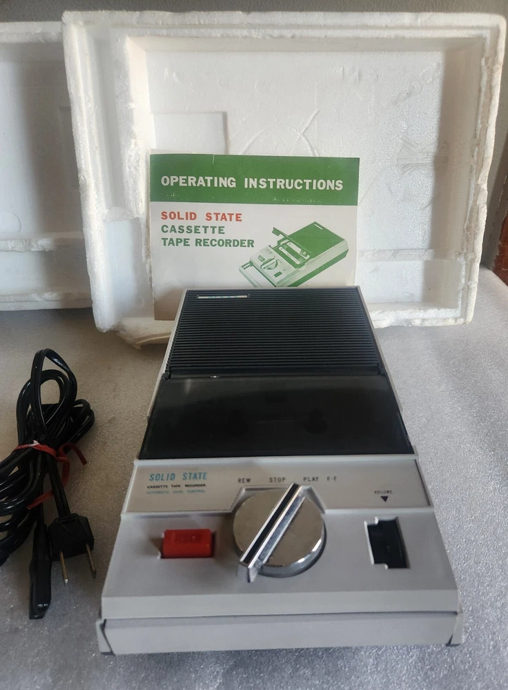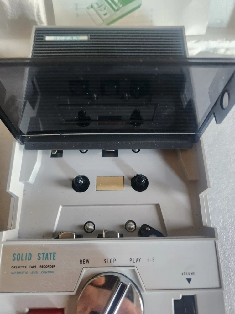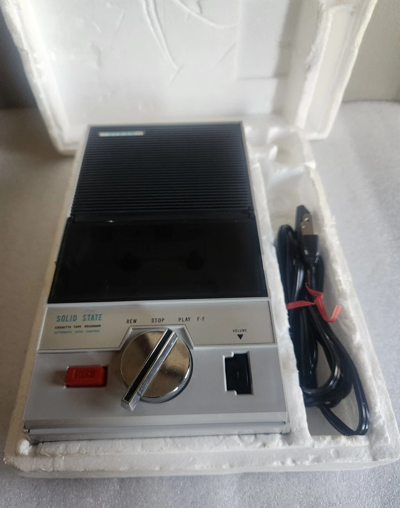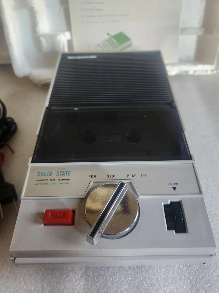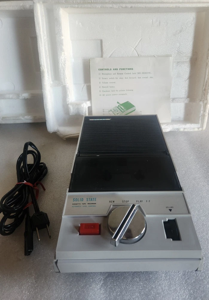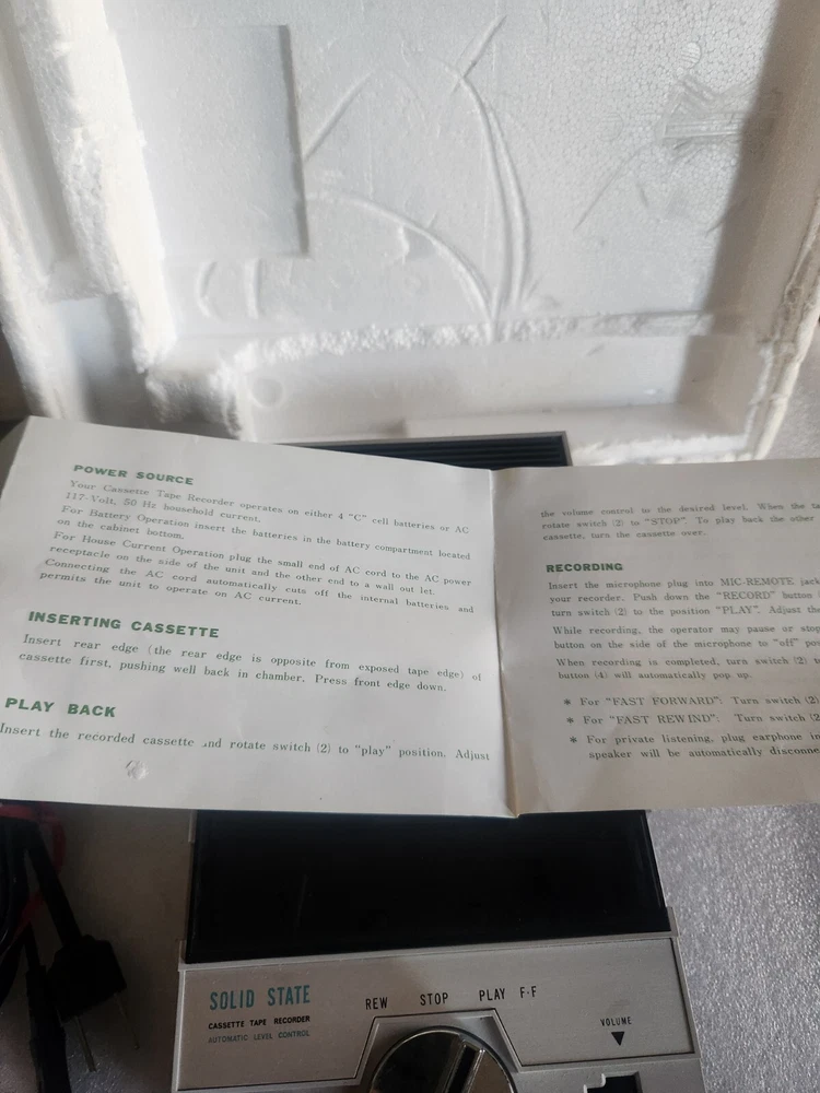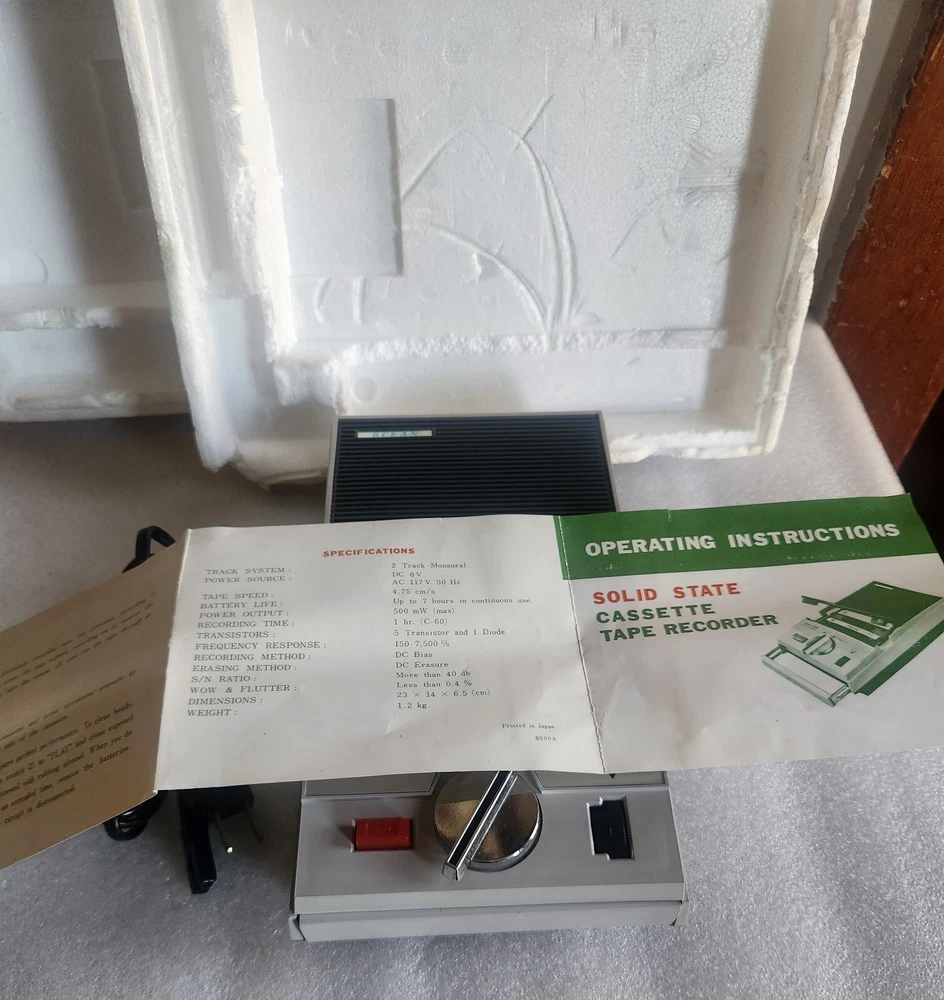 It's in almost brand-new condition. The battery compartment is perfectly clean and in working order. It comes with the owner's manual and power cord. It's a 2-track monaural.