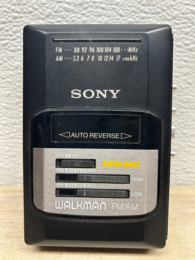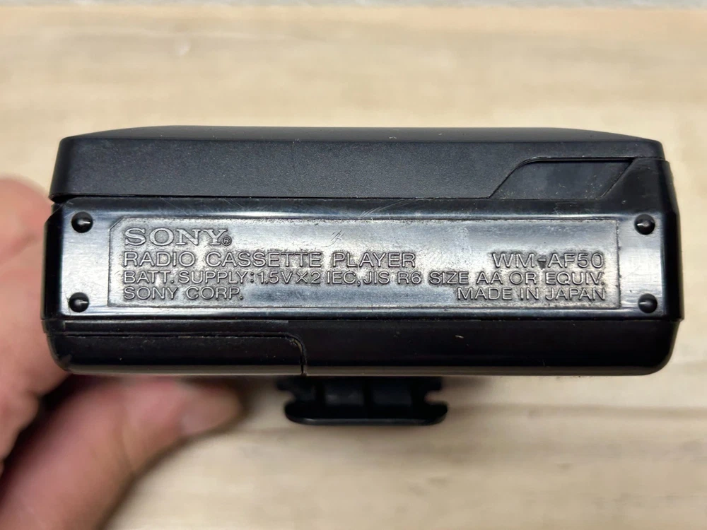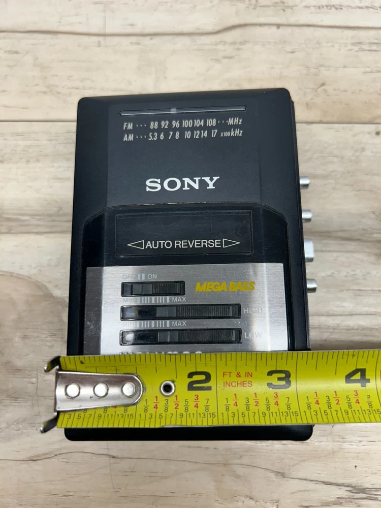 Vtg Sony Mega Bass WM-AF50 Radio Cassette Player Walkman With Sony Headphones.Fully tested-works great.No cracks,no chips,no broken or missing parts.It have normal signs of age and use.No rust on the batteries connectors.The headphones have the black coating on the edges peeling off but they sound amazing.PLEASE see all pictures for details.NO BATTERIES per USPS policy