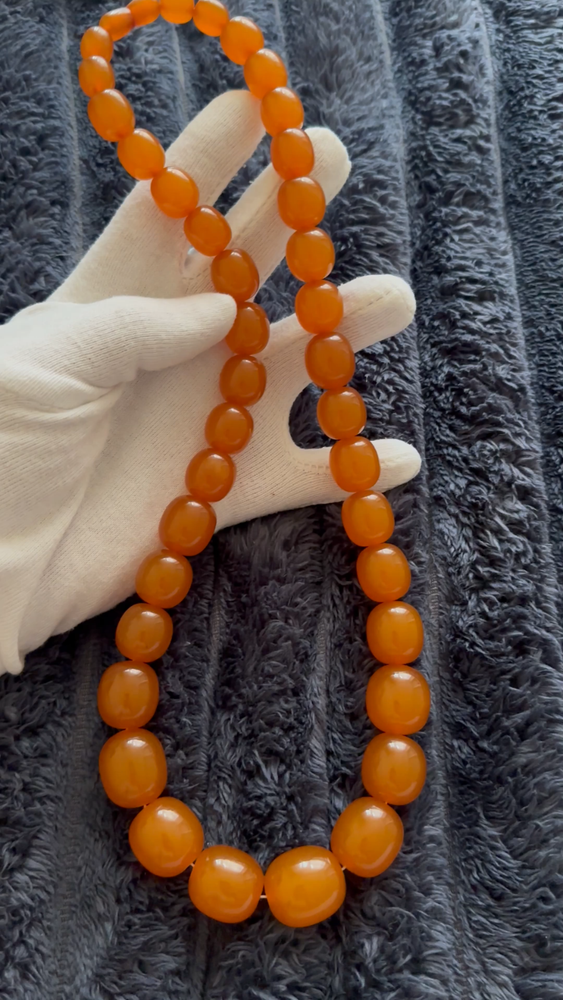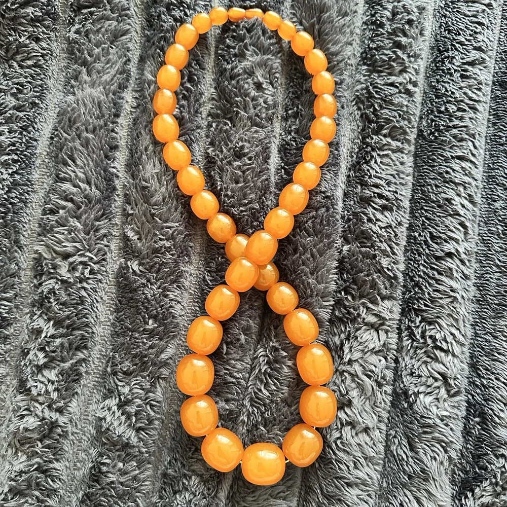 These huge amber beads from Kaliningrad is a stunning piece of fine jewelry from the Soviet Era. This 27-inch and 127 grams necklace features orange amber beads with a ball closure, making it a unique and stylish accessory for occasions like Christmas, birthdays, and Valentine's Day. The beaded design and natural creation of the amber stones add to the retro and ethnic theme of the piece, making it a standout addition to any jewelry collection. Made in the ussr during the 1970s, this original vintage necklace is a testament to the artistry and craftsmanship of that era. There are my other items... https://www.ebay.com/usr/universeofjewelry