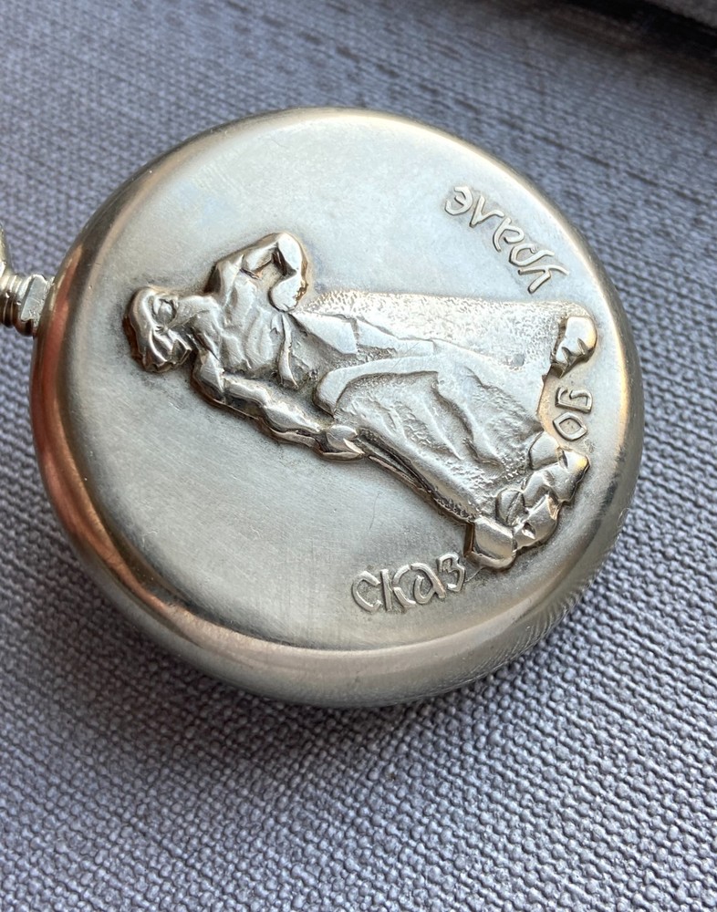 Molnija Soviet Vintage Pocket Watch 1970s Great model for themed professional vintage gift or for collection! The "Tale of Urals" the series of pocket watch Molnija had image stonemason - character from Ural fairy tales and associated with the Ural Mountains, historical events of the Urals. This pocket watch Molnija was made at the Chelyabinsk watch factory at 1970s. The case diameter is 50 mm, w/crown 54 mm . The mechanism cal. 3602 is mechanical and hand-winding The pocket watch has have an additional dust cover The pocket watch has good cosmetic condition for vintage pocket watch. The mechanism is fully functional and was served by a professional watchmaker. All the details you can see in the pictures. See the pictures . All the pictures are actual. Also I can provide combined shipping for several of my items. If you have any questions about delivery or about item, please let me know . Thank you. Dear customers, I send parcels by Ukrposhta worldwide from Ukraine without delay. The delivery time is now the same as before, regardless of the situation in my country. All services are working. Therefore, please not worry when ordering in my store. All parcels have been delivered to customers I sell vintage watches from USSR period. The watches was served and restored. The vintage watches are still good accessories. Also broken watch parts for creative projects and jewelry making. All the proceeds from sales support my family and support the economy of Ukraine.