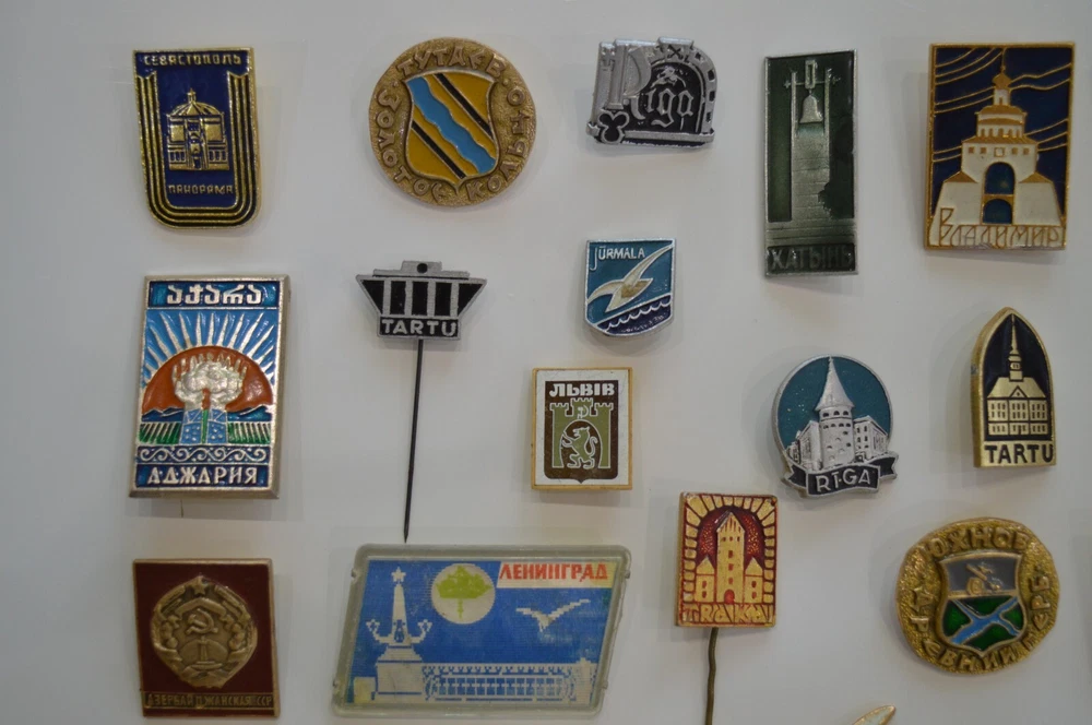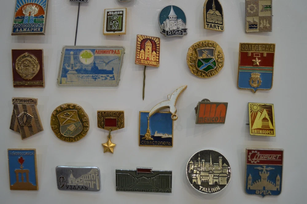 Vintage Soviet Pins Badges Different Cities Country Original Collectible . Condition Used . See The Photo . Have A Nice Day And Good Luck To Everyone !