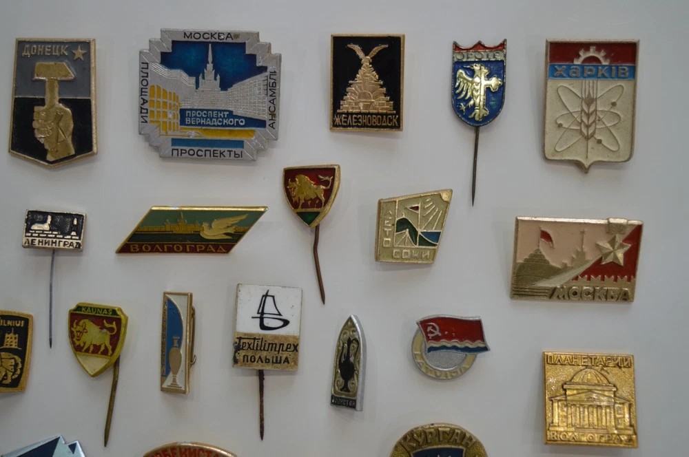 Vintage Soviet Pins Badges Different Cities Country ,Others Original Collectibles . Condition Used . See The Photo . Have A Nice Day And Good Luck To Everyone !