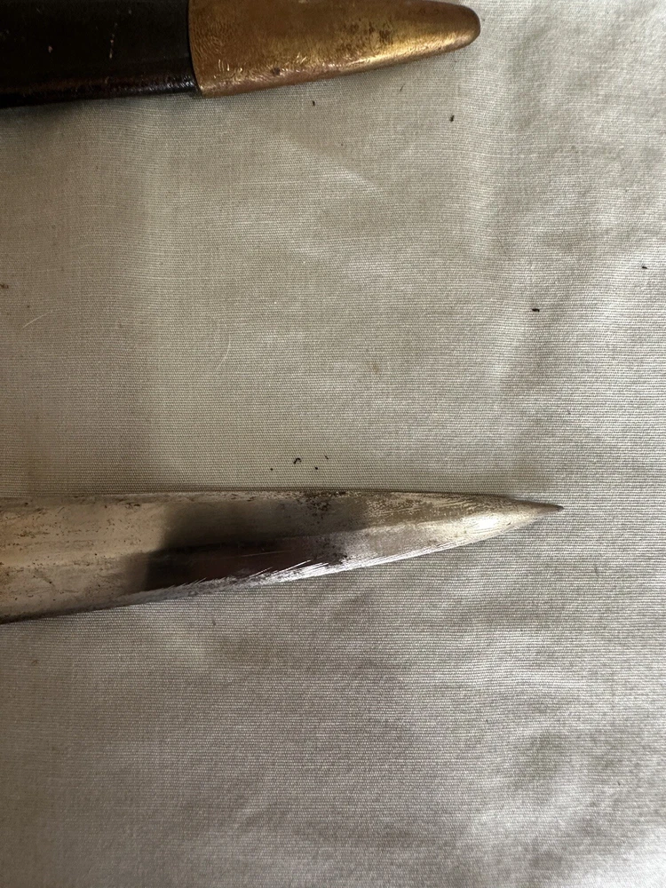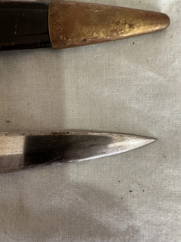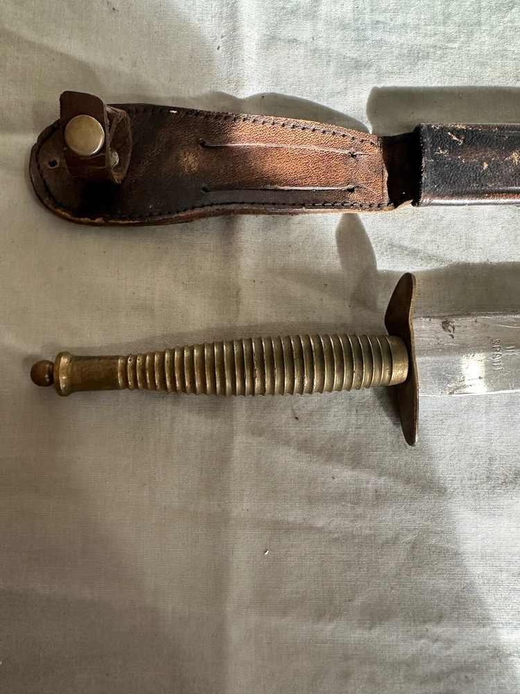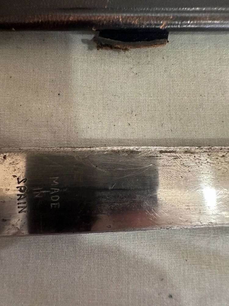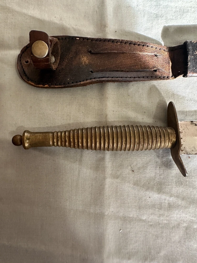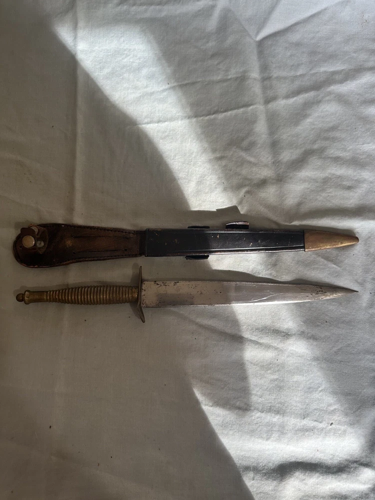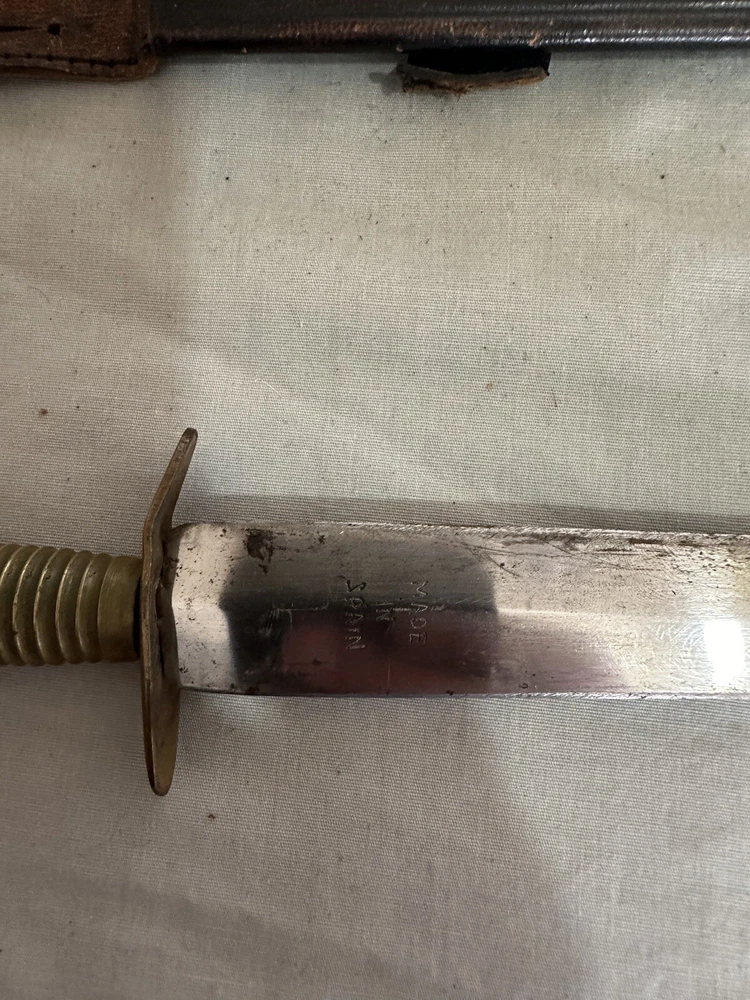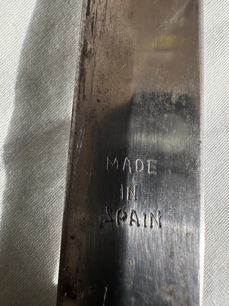 Vintage made in spain brass handled dagger. This dagger is in used condition. Blade is 7 7/8 inches long. Overall length is 12 1/4 inches. Not sure when it was made. Finger guard is a little loose. Blade seems to be in ok shape except someone did a less than good job sharpening it. See photos. All items are from a large estate and have been stored for many years. Items will be in used or new conditions. we will do our best to accurately describe condition issues and flaws. all items are sold in as is condition. Always ask questions before purchase. PAYMENTS: All payments are handled through Ebay payment system including sales tax and shipping cost. All international orders are through ebay global shipping program only. All fees, duties, taxes or import charges are the buyers responsibility and are managed with ebay global program. SHIPPING: We ship Monday through Friday usually daily but handling times may vary (see listings). Items sold on weekends will ship the following business week. All items will be shipped via usps, fed ex or ups. You will receive tracking information via Ebay when items ship. Free shipping is only to the lower 48 united states. Alaska ,hawaii and all other u.s.territories please contact for a shipping quote prior to purchase. international shipping will be offered through ebay global shipping program. RETURNS: We do not offer returns or warranty on parts sold. However if there are any issues we encourage you to contact us via Ebay messages so we have an opportunity to help. Please make sure your parts look the same as we do not guarantee fitment. if you are unsure of fitment it is advised to contact a professional ( dealer , mechanic) otherwise. Always ask questions prior to purchase we are always here to help as well. FEEDBACK/ CONTACT: We strive for 100% customer satisfaction so always contact us if there is an issue with your purchase. We are always here to help.PLEASE DO NOT JUST LEAVE NEGATIVE FEEDBACK. WE CAN NOT FIX A PROBLEM WE DO NOT KNOW WE HAVE CONTACT US FIRST PLEASE. Always feel free to contact us via ebay messages with any questions you may have.