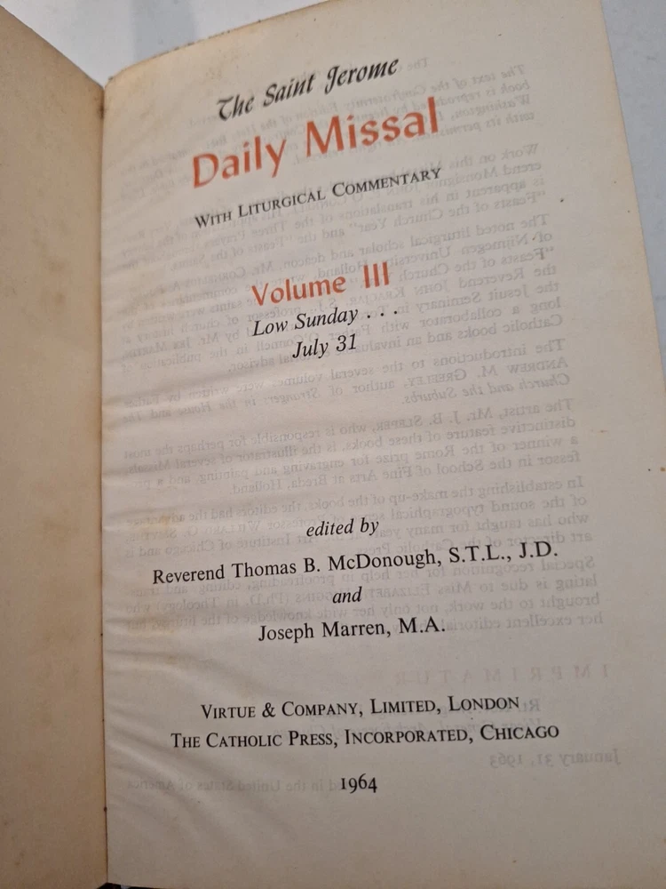 Vintage St Jerome Daily Missal Volume III With Liturgical Commentary 1964