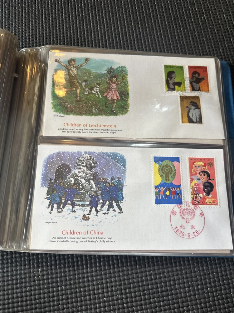 This vintage stamp collection features 39 cards from the "The World Of Children" series, released in 1979. The stamps showcase various scenes of children from around the world, making it a great addition to any stamp collection. The collection comes in an album and is perfect for collectors or anyone interested in vintage stamps.