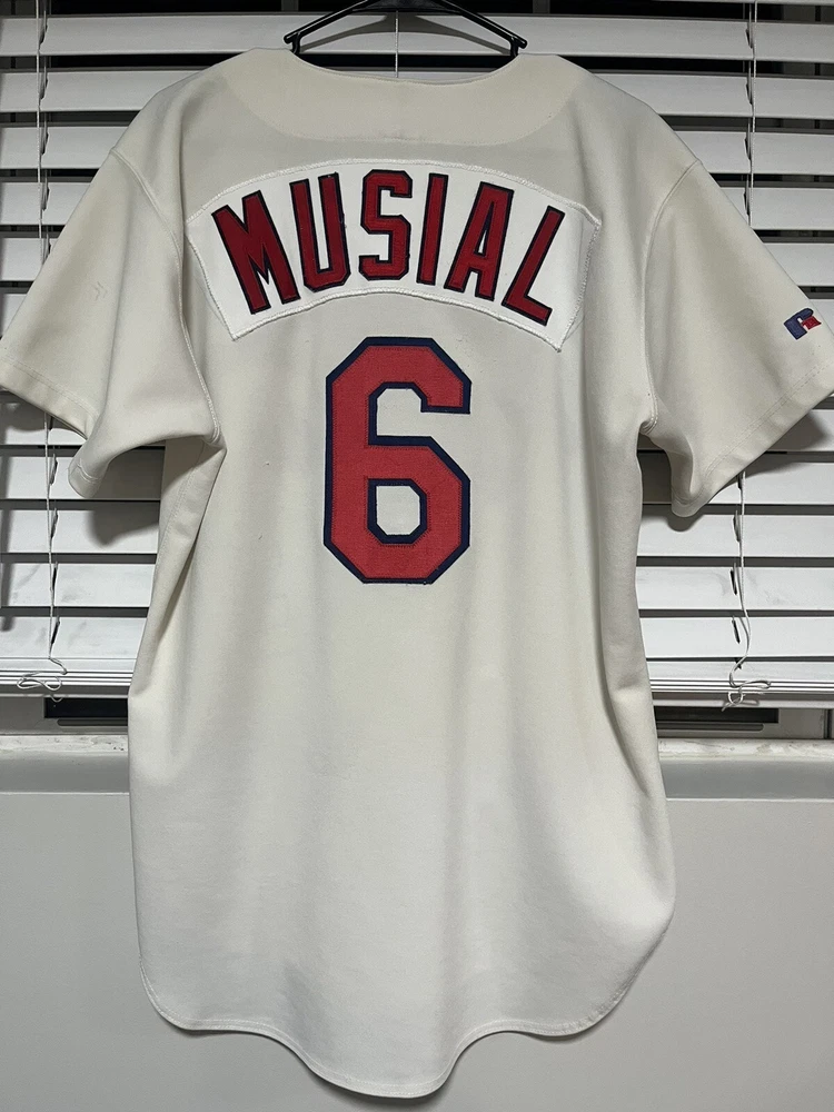 Vintage Stan Musial Russell Athletic Jersey Size 44. Condition is Used. Shipped with USPS Ground Advantage.