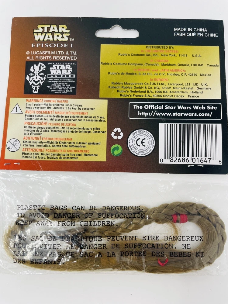 Listing is for a new in package Obi Wan Kenobi Jedi braid clip for use with an Obi Wan costume. New in package. Please read entire listing, view all pictures, and ask any questions before making a purchase because I no longer accept returns. But please let me know if you have any issues after purchase