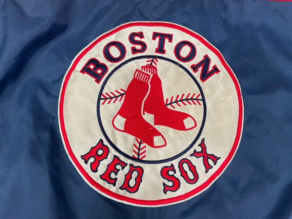 This is an excellent Starter Genuine Merchandise Boston Red Sox jacket. Lightweight windbreaker style in red, white, and blue. Embroidered logos front and back. Full zip. Excellent vintage condition. Very minor wear. Zipper works great. Always happy to combine shipping when possible. Thanks for looking!