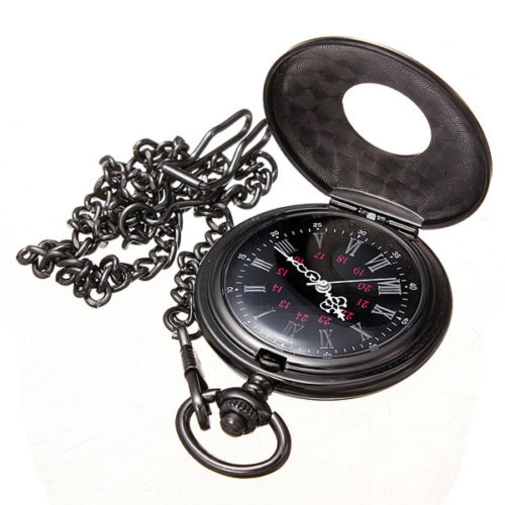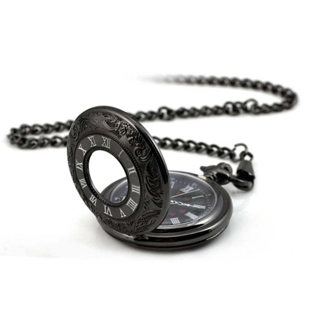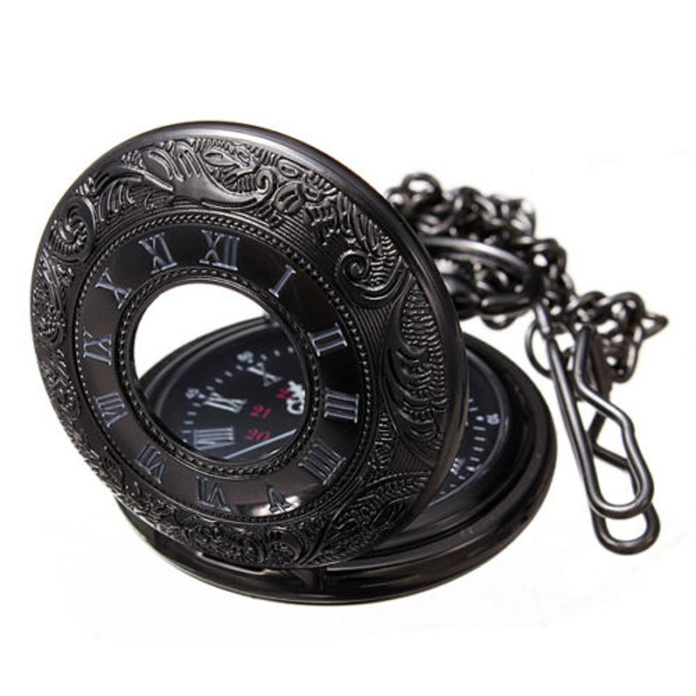 $ 11.46Vintage Steampunk Black Quartz Pocket Watch Necklace with Chain Gift