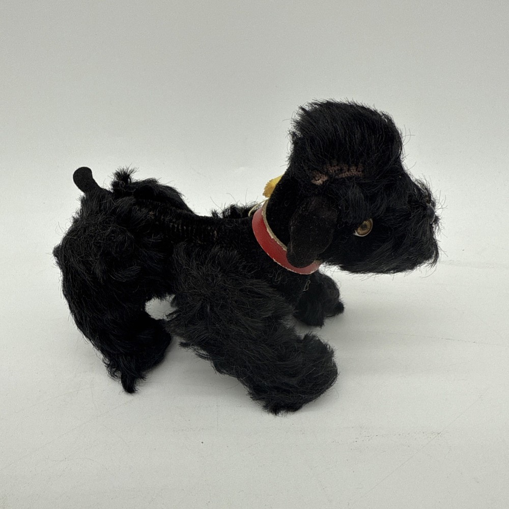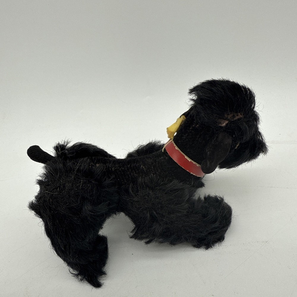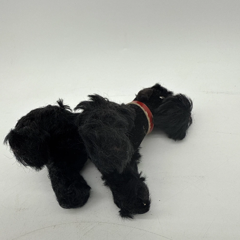 The Vintage Steiff Black Poodle Dog is a classic stuffed animal toy from the renowned brand Steiff. Made between 1946-1969, this collectible piece features the iconic black poodle design that Steiff is known for. With its high-quality construction and timeless appeal, this vintage toy would make a cherished addition to any collection of Steiff stuffed animals.