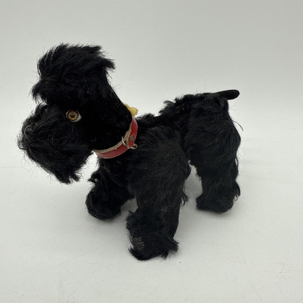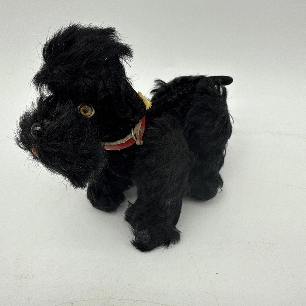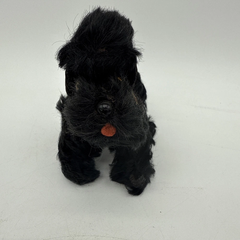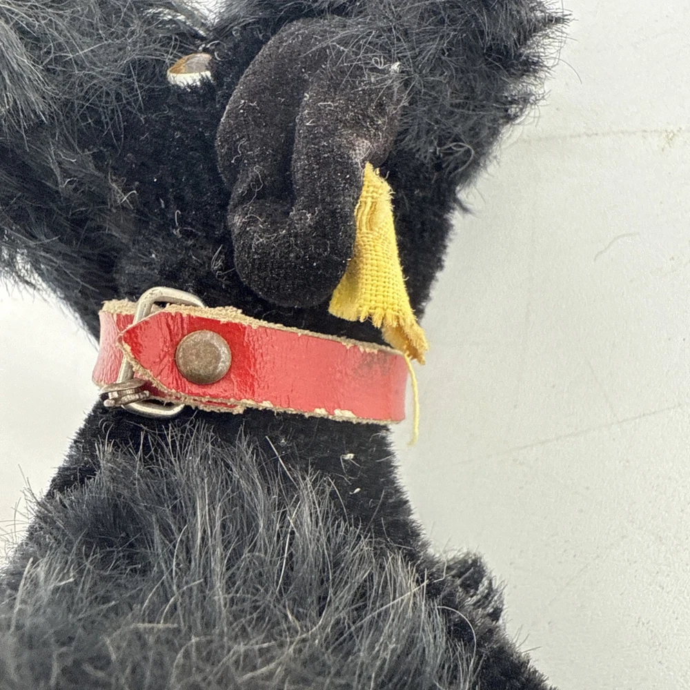 The Vintage Steiff Black Poodle Dog is a classic stuffed animal toy from the renowned brand Steiff. Made between 1946-1969, this collectible piece features the iconic black poodle design that Steiff is known for. With its high-quality construction and timeless appeal, this vintage toy would make a cherished addition to any collection of Steiff stuffed animals.