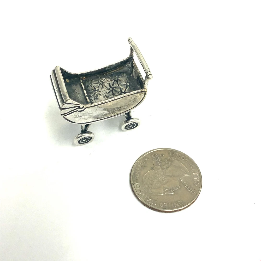 UP FOR SALE, WE HAVE THIS STUNNING VINTAGE STERLING SILVER SIGNED 925 G DETAILED HANDMADE CARVED 3D VICTORIAN BABY STROLLER CRIB PRAM COLLECTORS DOLLHOUSE FIGURE MINIATURE 43-47-Ln WEIGHT: 16.4 GRAMS METAL: STERLING 925/1000 THIS ITEM IS MARKED: 925 G SIZE: 1 1/8" X 5/8" x 1 1/8" Please check out our other items for sale in our store, Also, check back frequently as we add items to our store in all categories On an almost daily basis. So don’t miss out! Please email us with any questions regarding an item for sale. Thanks for visiting our Store!