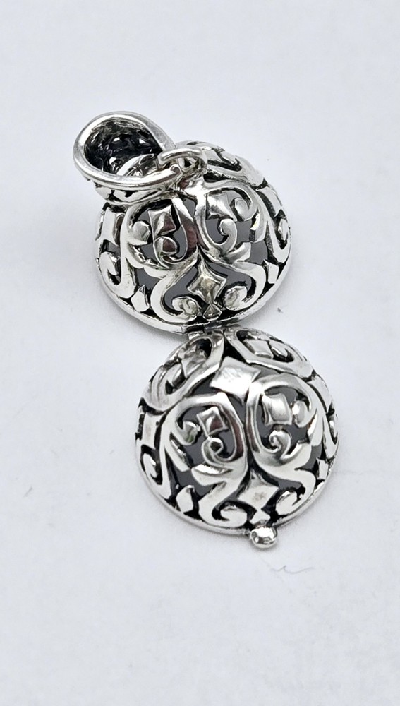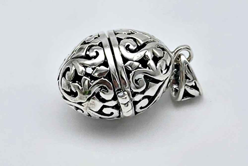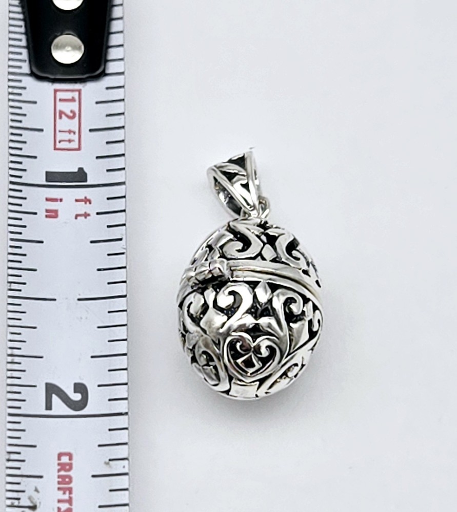 Vintage Sterling Silver Ornate Floral Locket Egg Oval Drop Pendant - 5.5g