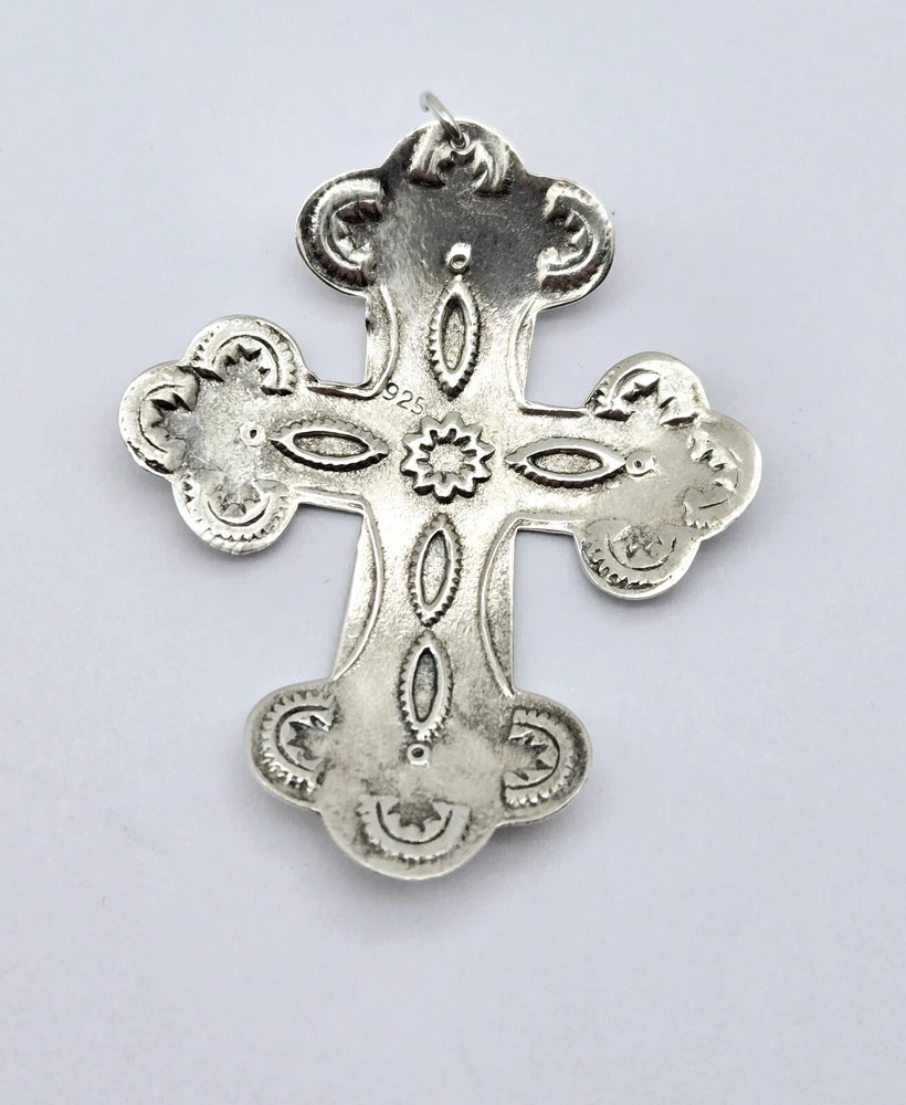 Chain Type:Not ApplicableDiamond Clarity Grade:Not ApplicableMain Stone Creation:Naturalgtin13:Does not applyColor:BlackBrand:UnbrandedCountry of Origin:UnknownPendant Shape:CrossUPC:Does not applyMetal Purity:925 parts per 1000Construction:100% .925 SilverMain Stone Shape:CrossNecklace Length:Not ApplicableSigned:YesTheme:ReligiousTotal Carat Weight:NAStyle:PendantType:PendantSetting Style:Not ApplicableColored Diamond Intensity:Not ApplicableMain Stone:No StoneDiamond Color Grade:Not ApplicableBase Metal:Fine Silver, 925 parts per 1000Metal:Sterling SilverCut Grade:Not ApplicableCertification:Not Applicable