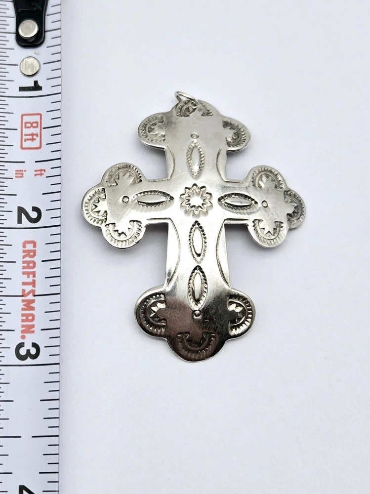 HomeVintage Sterling Silver Stamped Native American Cross Drop Pendant - 6.7g