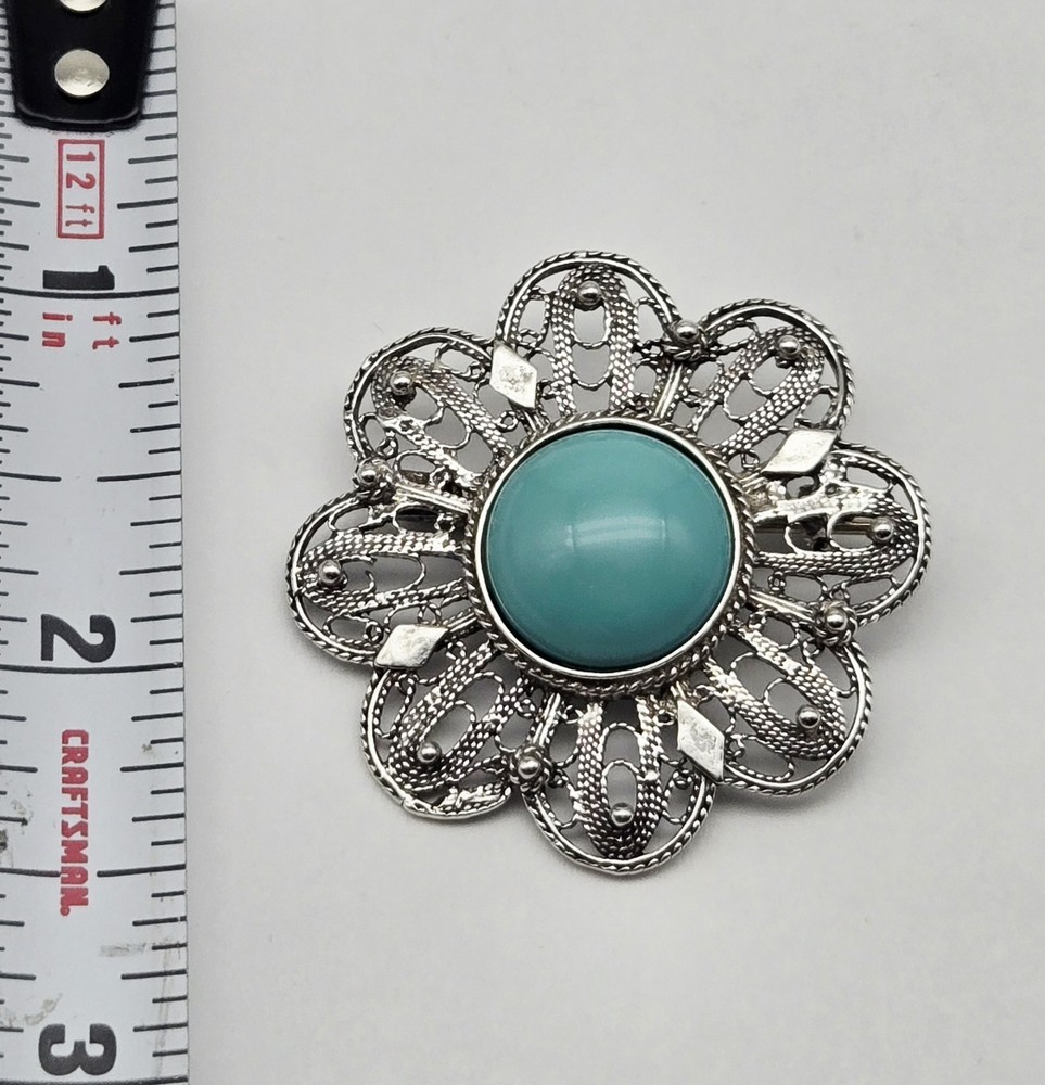 $ 12.14Vintage Silver Tone Leaf Brooch with Green Jelly Belly Faux Stone 2 Inch Pin