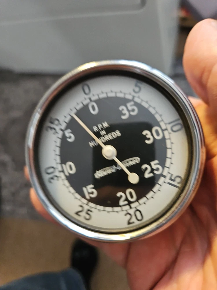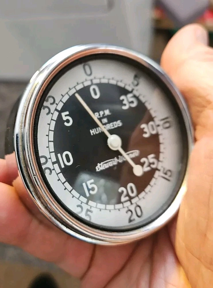 HomeVintage Stewart Warner Hand Tachometer 0 - 35 RPM In Hundreds Analog Silver