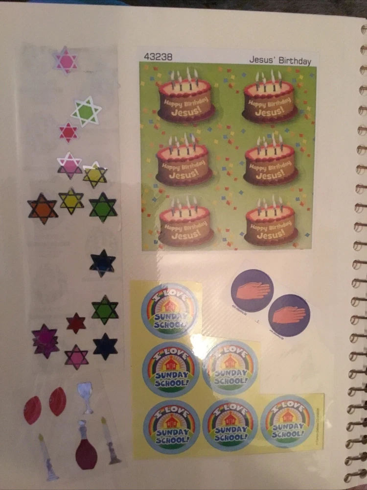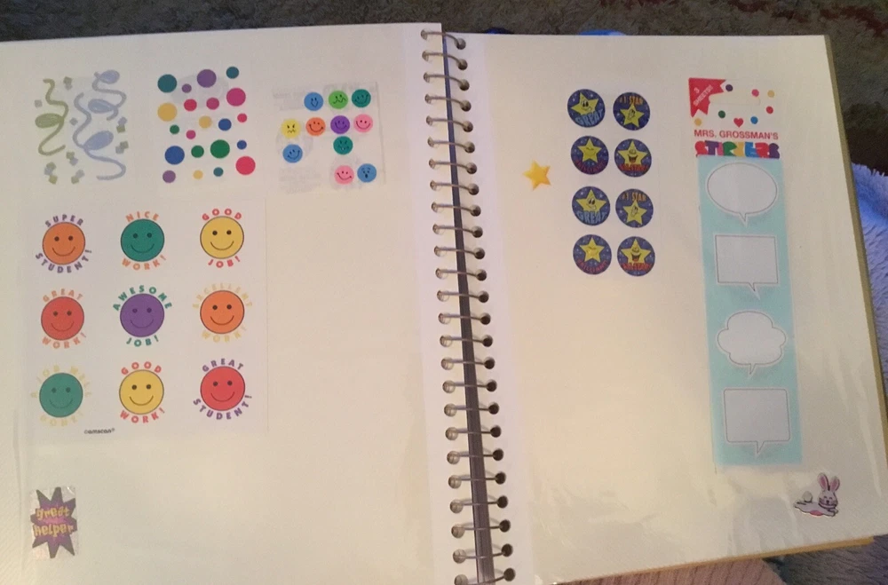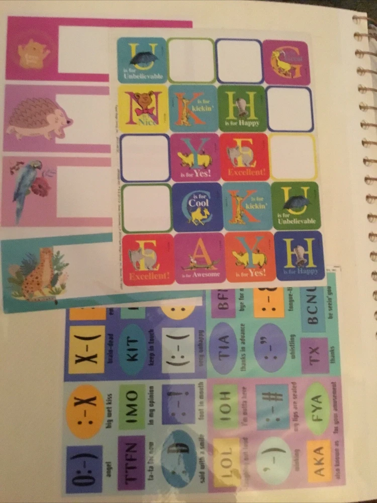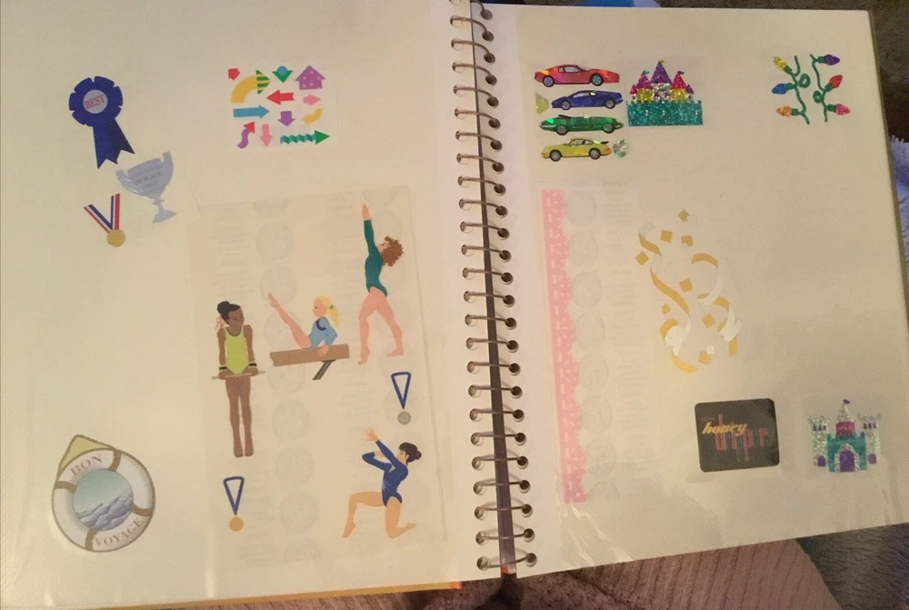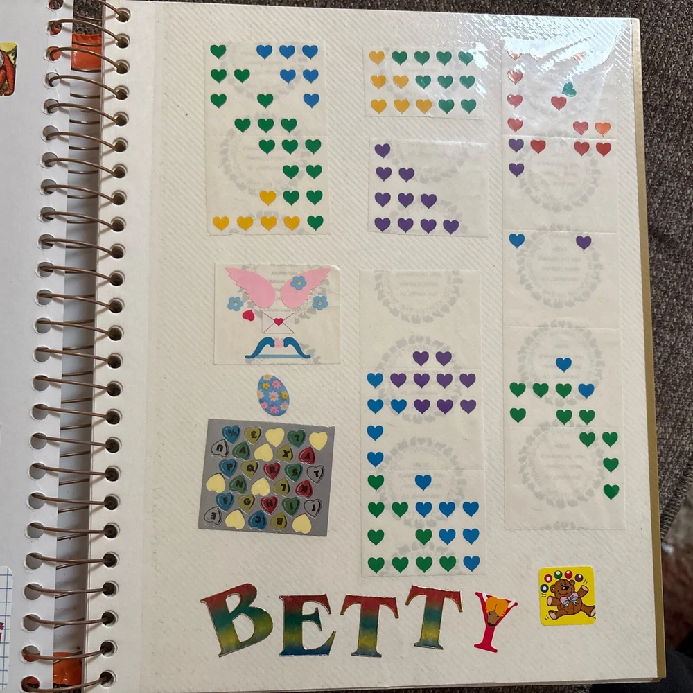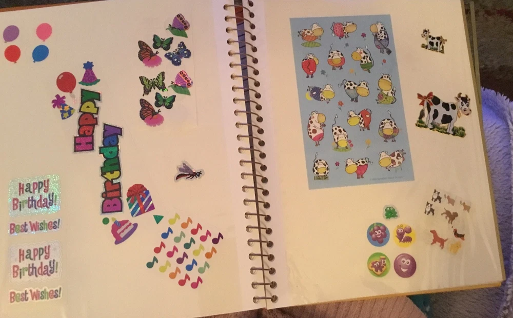 Vintage Sticker Book Album featuring designs from the 80s, 90s, and 2000s by popular brands like Sandylion, Hallmark, AGC, and Mrs Grossmans. This multi-color sticker book is perfect for adding a touch of nostalgia to your scrapbooking projects. Dive into a world of history-themed stickers with this charming collection, ideal for any craft enthusiast. Perfect for adding a retro flair to your creative projects, this sticker book is a must-have for any scrapbooking aficionado. This book has 40 pages and 38 of them contain stickers with their original backing (with the exception of the inside cover where the backing of the stickers was removed). Please see all the photos.
