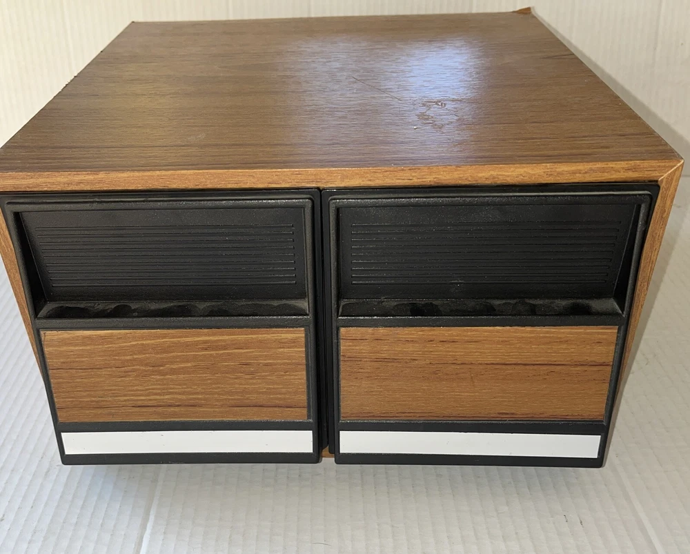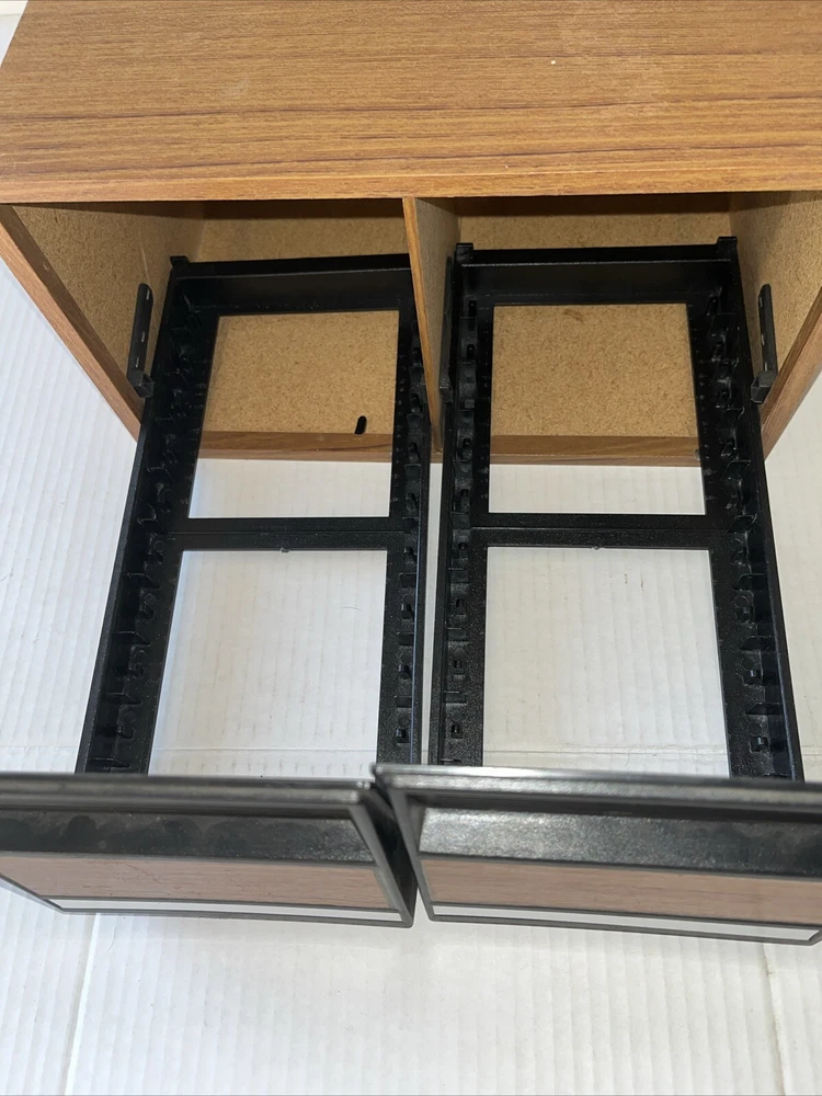 One corner has a little cosmetic damage please see pictures This vintage storage case is the perfect addition to your home entertainment system. With two drawers that hold up to 40 CDs, it provides ample storage space for your music collection. The case is made of high-quality rigid plastic material and features a beautiful brown color that complements any room decor. Designed to fit CD, DVD, and Blu-ray discs, this unit is versatile and practical. Its compact size makes it easy to place in any room, while its sturdy build ensures that your music collection remains safe and secure. Whether you're a music enthusiast or just looking for a stylish storage solution, this vintage storage case is the perfect choice.