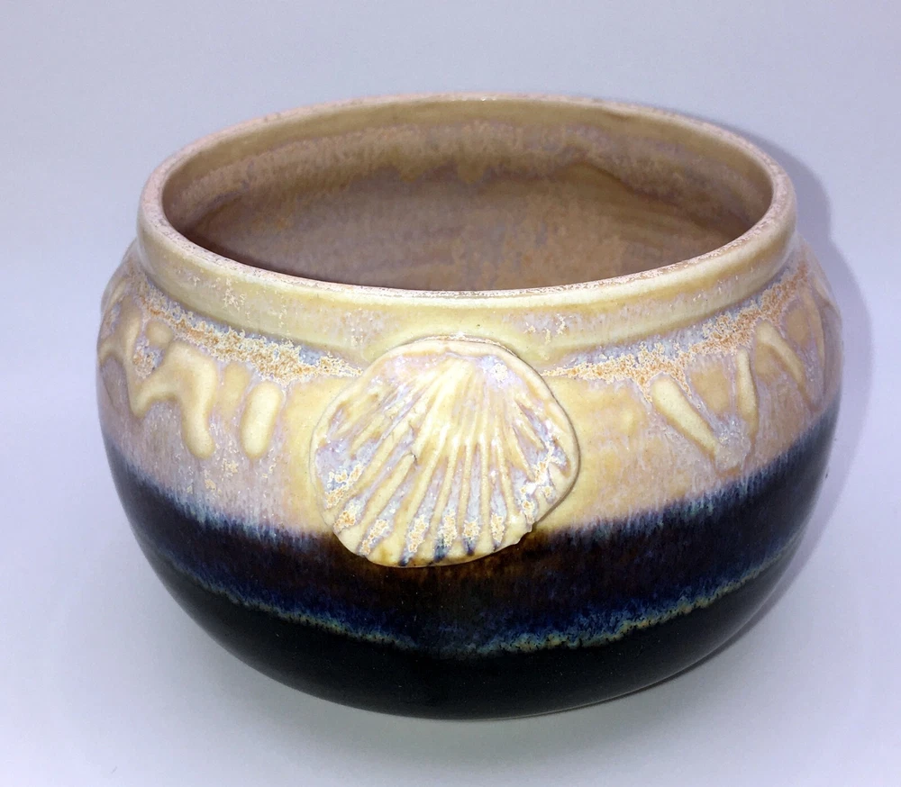 Vintage Studio Art Pottery Ceramic Matte Bowl Hand Thrown Artist Signed North Carolina original pottery Colors are black (on 3/4 near bottom) brown, blue, beige (top and inside) "sea sand" color An intricately designed seashell on each side Bottom signed by artist ~ Gianna ? with a T in last name - can't make out No chips or cracks. Wonderful condition Pictures are of the exact item you will receive. Zoom in for details. Message me with any questions. All sales final. Carefully packed and shipped Thank you for shopping with Daisy! Here's a Link to MY STORE for more great vintage, eclectic collectibles and estate treasures: https://www.ebay.com/str/daisysdishes