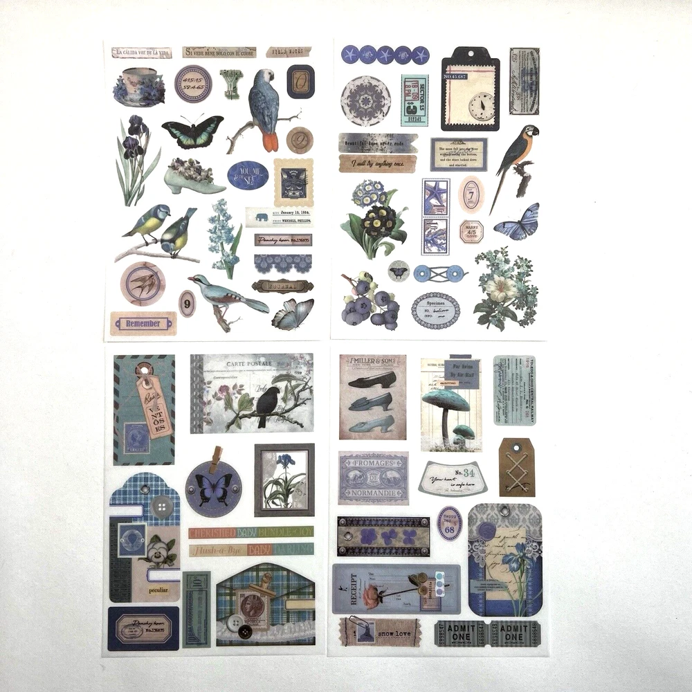 4 sheets. Vintage style Victorian garden. Blue hued. Washi paper stickers. Kiss cut stickers (close up photo #3.). No need to use scissors to cut out images. Washi paper has some transparency to it so a light or white background will work best with these. The sheets measure approx. 6 5/8 x 4 3/4 inches. I have more stickers, washi tape and paper for sale. I do combine shipping. Please put all the items you want to purchase in ONE cart and then pay. I will refund you the difference in shipping after shipping label is printed. Let me know if you have any questions through eBay messaging. Thank you for stopping by!