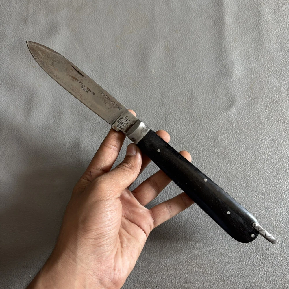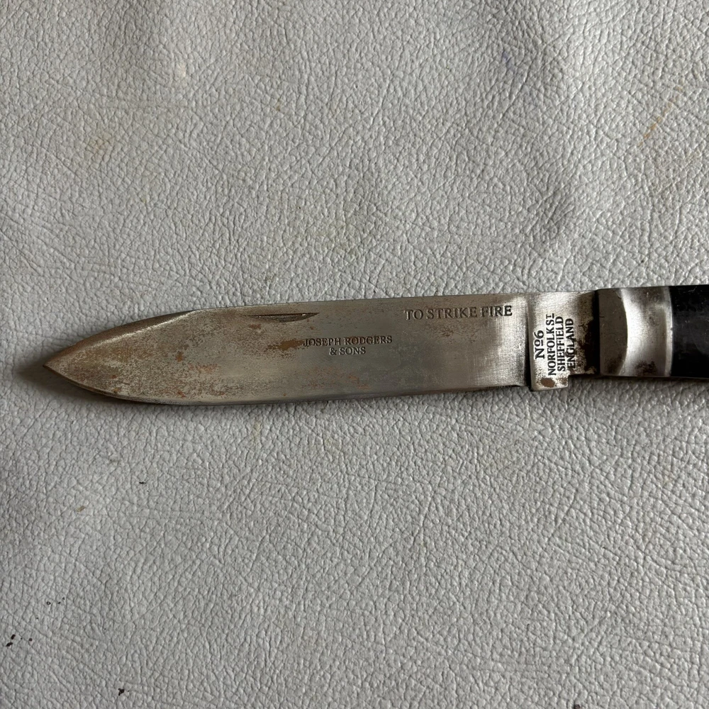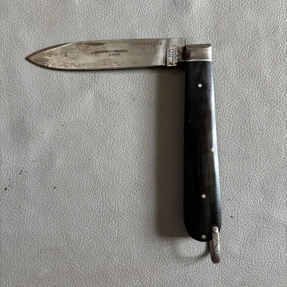 Antique style big Joseph Rodgers Folding knife Up for sale nice Unique Joseph Rodgers Folding knife. Blade is Stamped with " Joseph Rodgers " , " No.6 Norfolk St. Sheffield", England With makers stamp Star & cross on blade. Handle has buffalo horn grips . Overall Piece is in good condition & original condition. Check images for extra details. The piece is in its actual condition. (P.S Its vintage replica in original style) Nice piece for collection!!! Dimension in inches pls refer images. Weight = 232.6 gm approx we will ship via FedEx or any other international courier company. If you have any questions regarding payment, shipping, or our policies, please do not hesitate to contact us. Thank you for your interest in our auctions and we look forward to hearing from you. Note: Pictures are part of description, so view every image carefully for details.
