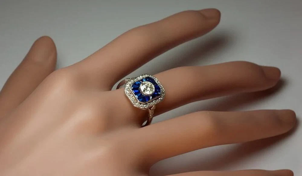 Vintage Style Old European Cut Simulated Diamond Art Deco Ring White Gold Plated