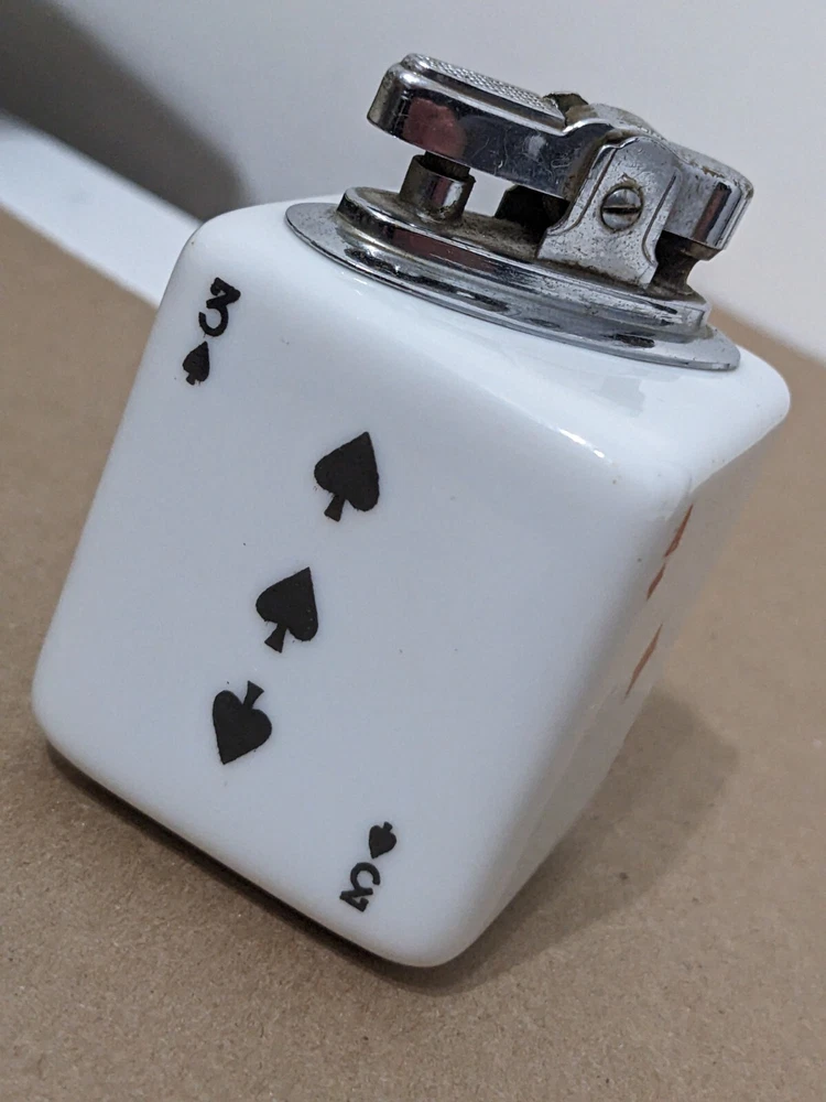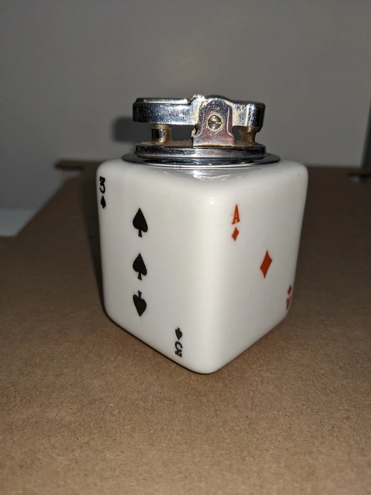 Another piece of history probably from the 70s, cool old cigarette lighter from back when probably most people smoked. Still in nice displayable condition. It measures about 1 13/16 wide and about 2 3/4 high with the striker. If you want to use this still I would say a new wick and flint would be in order maybe a drop of oil. Please ask any question you may have prior to purchase, Thanks for looking!