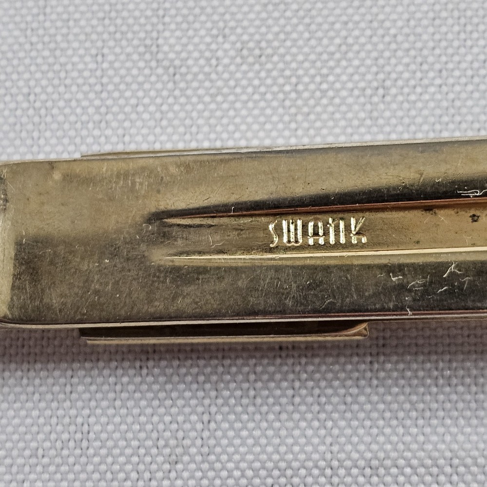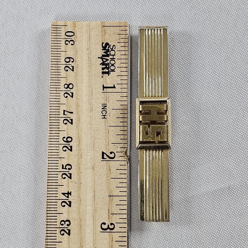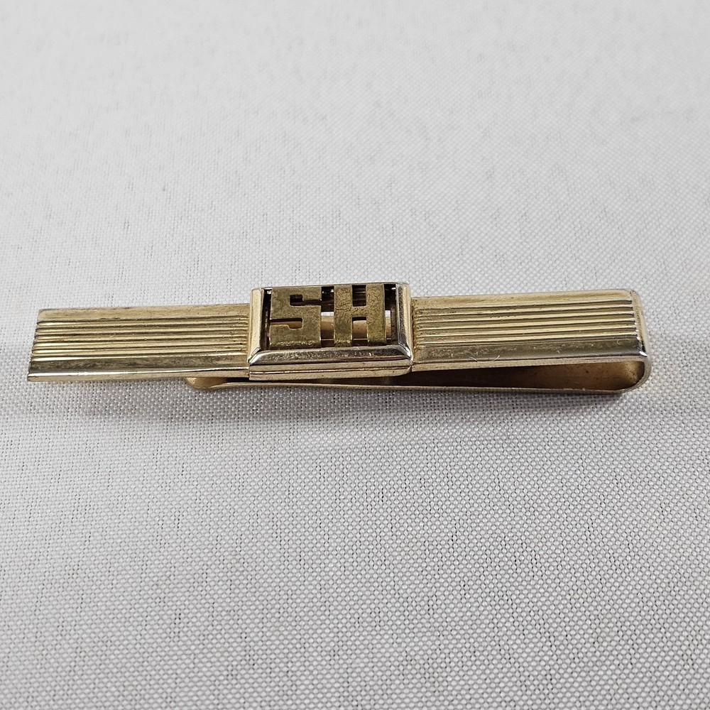 Vintage Swank Gold Tone Mens Tie Clip w/ Initials HS/SH Depending On Which Side It's On. Has Some Signs Of Use, Age, And Wear. Please Check All Pictures Closely For A More Detailed Visual Description Of Condition And Measurements. Ships Out Free Within One Business Day.