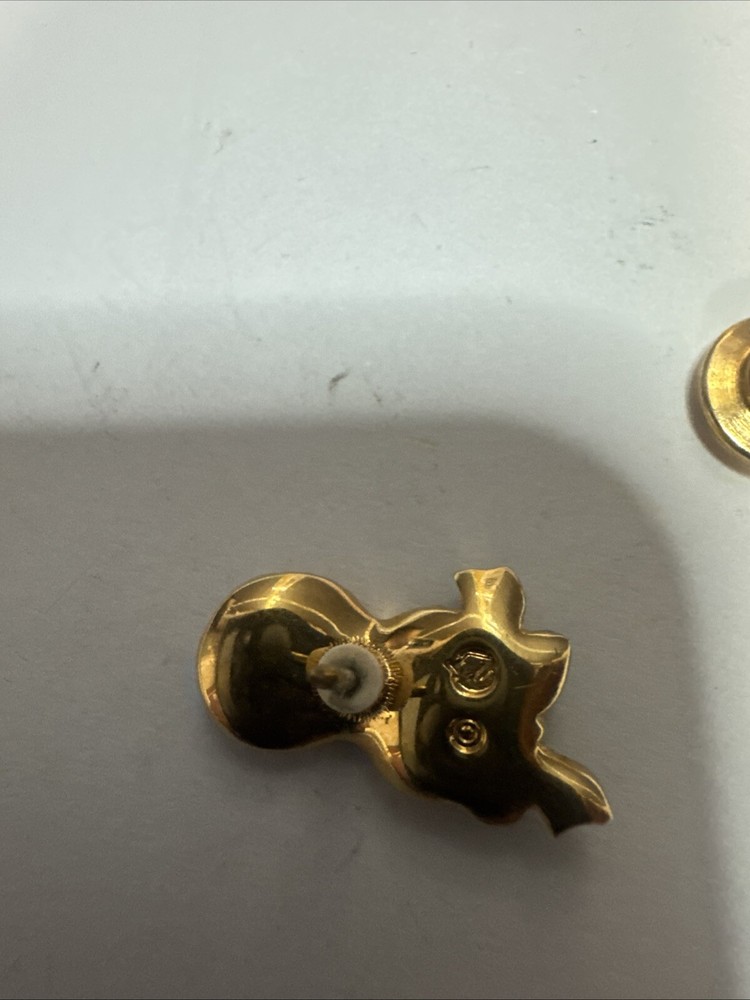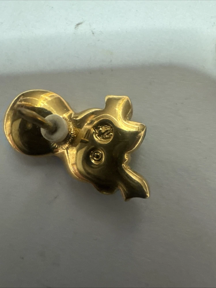 This vintage pin is a tie tac style featuring a green enamel design with a white/colorless crystal as the main stone. It is signed by Swarovski with their distinctive swan mark and is crafted in yellow gold plated metal. The pin has a Mardi Gras theme, making it a unique and eye-catching accessory for any vintage jewelry lover. Please see photos for condition. Please feel free to contact us with any questions before purchasing.